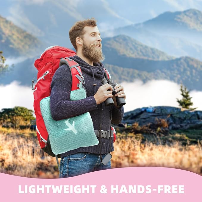 - 3) CARRY BAG - Our travel blanket set comes with a portable carry bag. The back of the carry bag has a zippered pocket to store your phone, passport and more, keeping your essentials secure on the go. The carry bag itself features a dual-zipper design that doubles as a hand warmer when it's chilly out.