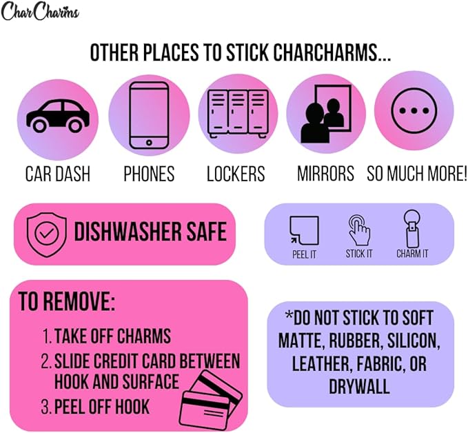- EASY APPLICATION: No tools needed - just hang these charms on the stick-on hook (not included) for an instant fashionable flair that's perfect for staying hydrated on the go