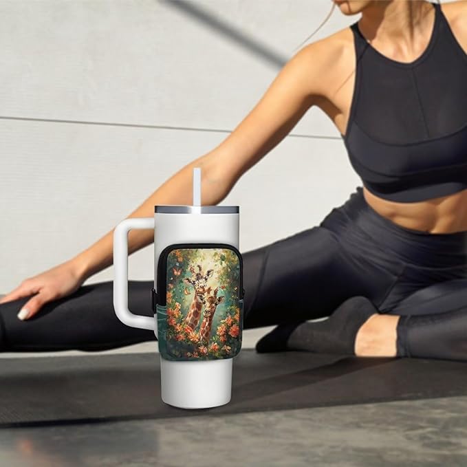 Giraffe Stanley Cup Pouch with Adjustable Strap Water Bottle Storage Bag 40oz IceFlow Tumbler Pouch for Stanley Accessories Flower