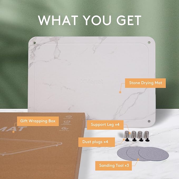 - Super Absorption: Try the stone dish drying mat from XMarrat, a fast-drying stone mat for your kitchen. Made from natural diatomaceous earth, it quickly soaks up water and dries out fast. Keep your kitchen counters, drawers, and floors dry, clean, and free from leaks, bacteria, and odors.