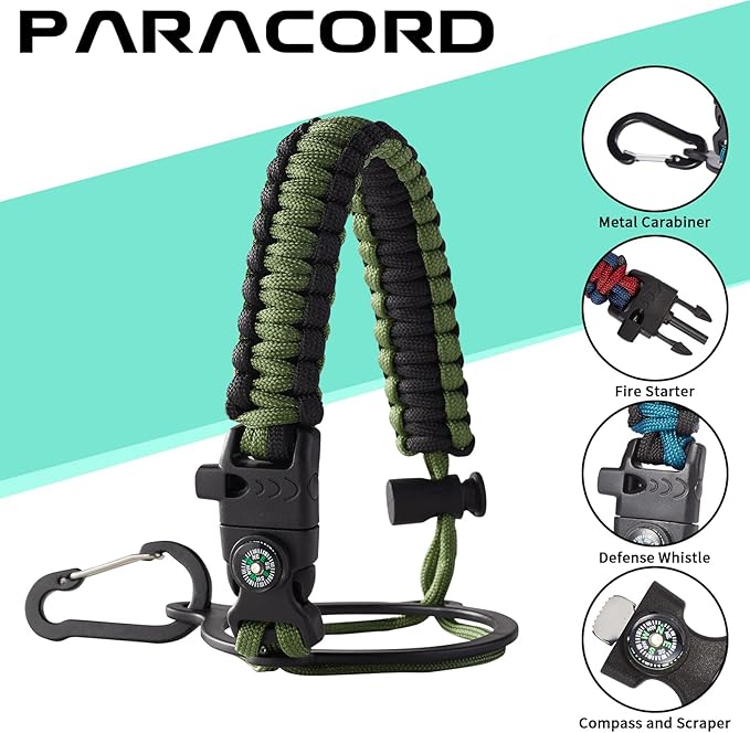 - UNIQUE PARACORD—Perfect Accessories: bright color paracord matches the flask water bottles to give you a youthful vibe while adding a personal style. It comes with a compass, safety loop, metal carabiner, flint, igniter, and whistle to become your survival tool for your wild adventures