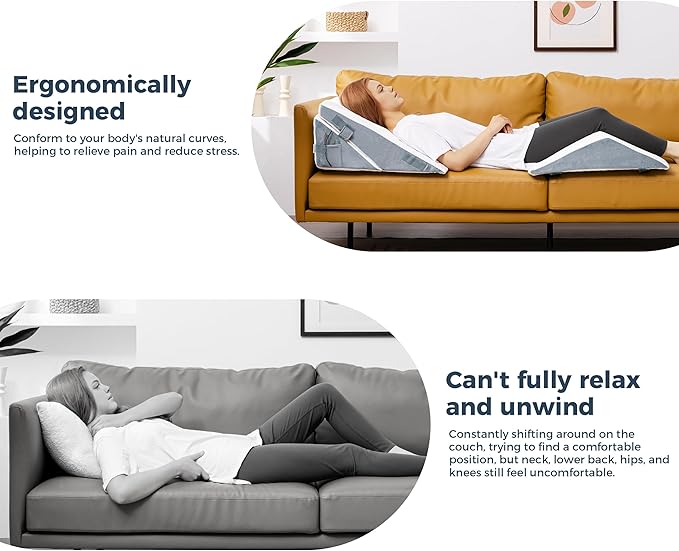 - A Great Partner for Rest and Recovery: Ideal for bed rest after surgery or during pain, this wedge pillow elevates the head, neck, back, feet, and legs to enhance sleep quality. It effectively alleviates symptoms like acid reflux and swelling, aiding postoperative recovery, and has been reported to relieve snoring. The design elevates both the upper and lower body in a single motion.