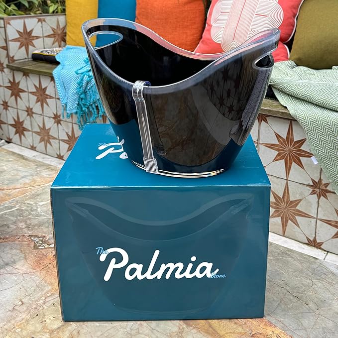 Acrylic Ice Bucket with tongs, Ice Bucket for Parties, Party Supply, Ice Bucket for Cocktail Bar, Champagne Bucket, Tub for Beer, Sparkling Wine, Cocktails, or Ice Cream., Large, Black