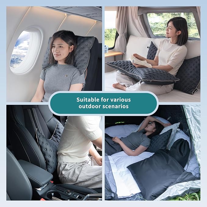 - Back Straps: The back of camping pillow is equipped with three 3-position adjustable straps, the horizontal strap is suitable for a variety of camping mats and can be hung on luggage poles. Vertical straps can be firmly fixed on the headrest of car seats