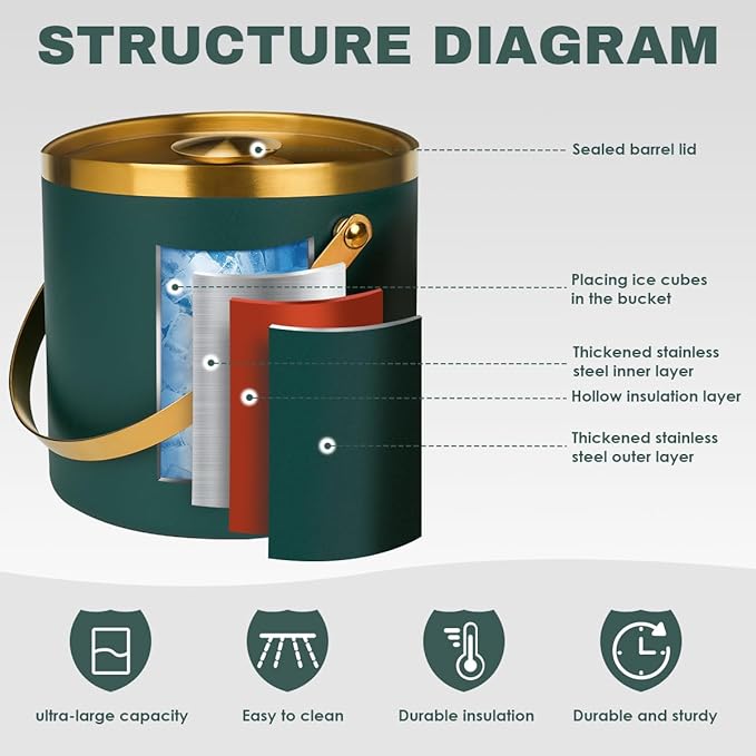 - 1. Keep your drinks cold for hours with this 3 Liter Double-Wall Insulated Ice Bucket for Cocktail Bar, perfect for parties and gatherings.