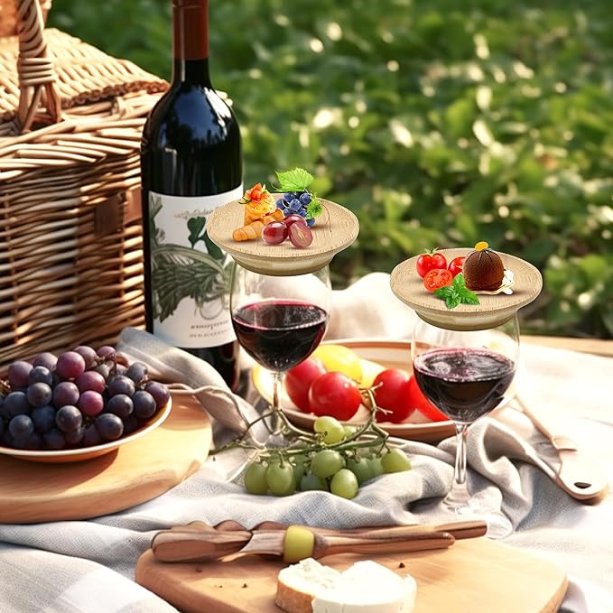 - Multifunctional Design: With its multifunctional design, this bamboo wine glass topper can be used as a charcuterie board or as a standalone plate for appetizers and desserts. whether it's a casual gathering or a formal dinner, this topper adds elegance and functionality to any occasion.