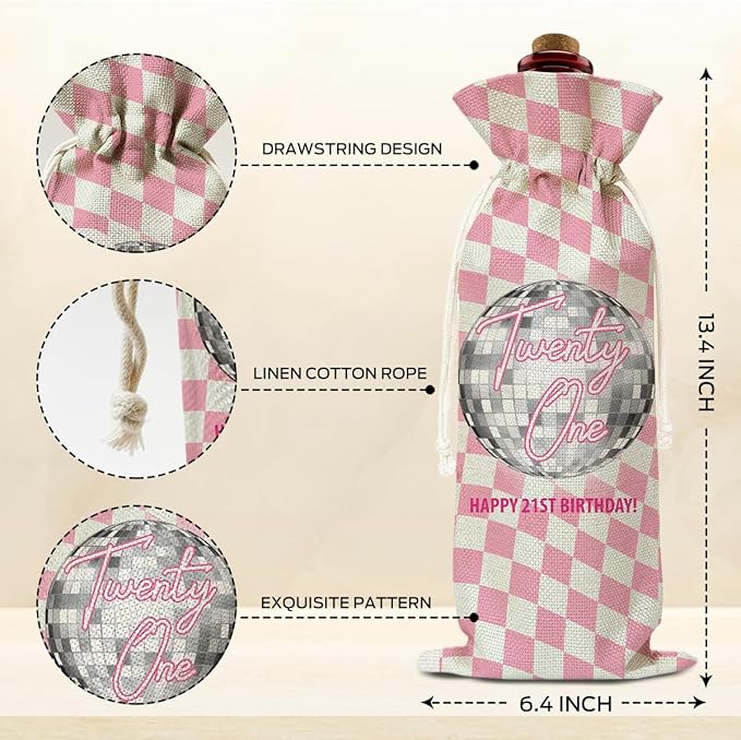 21st Birthday Gifts Burlap Wine Bags Gift for Woman Friend Bestie BFF, Reusable Wine Gift Bags with Drawstrings for Birthday Party Decoration Congratulation Thanksgiving Christmas Home Storage - 10