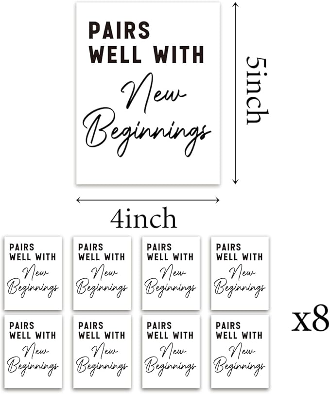 8 Pcs New Beginnigs Wine Labels, New Job New Home Retirement Graduation Wedding Gifts for Women Men, Housewarming Gifts New Home, Pairs Well with New Beginnigs Wine Bottle Stickers Labels