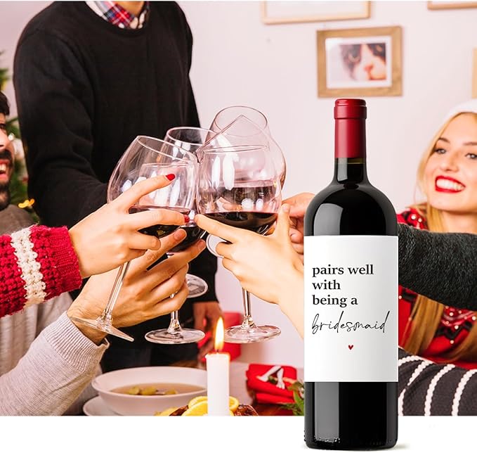 - 【Funny Bridesmaid Proposal Wine Labels】Make wedding more fun! Our bridesmaid wine label says 'Pairs Well with Being a Bridesmaid', these unique wine labels are the perfect way to celebrate a successful wedding with funny sayings that everyone will love. Make memories last with these bridesmaid proposal wine bottle stickers.