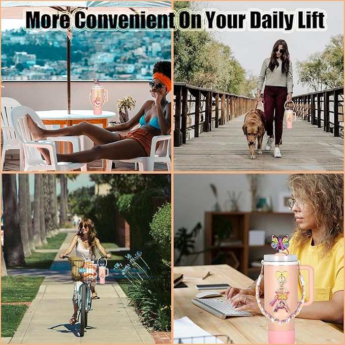 - Bohemian Look: Our stanley cup stanley tumbler accessories come with silicone butterfly letter stanley straw topper, boho water bottle handle, pink stanley boot, pink glitter letter keychain charms and replaceable chain. The water bottle handle comes with a advanced silicone safety ring and woven handle strap, unparalleled safety. Pink and Cute, ideal for indoor or outdoor activity.