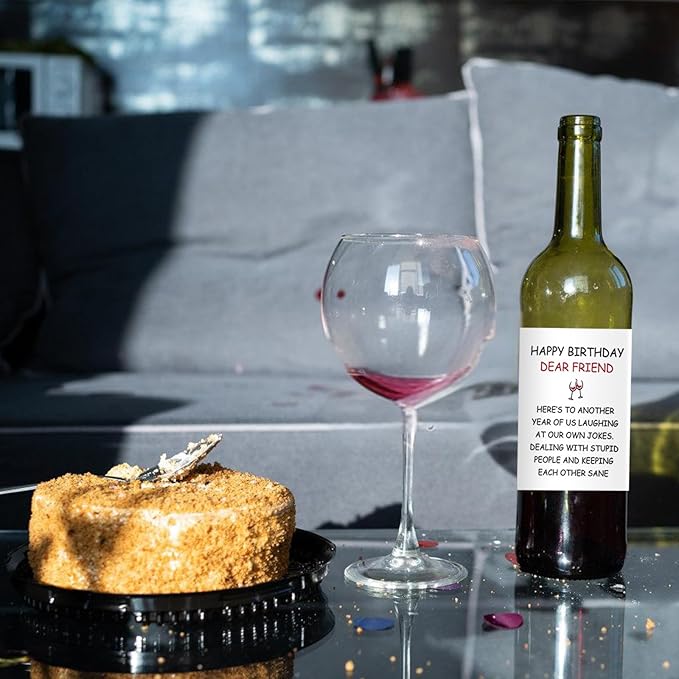 24Pcs Funny Happy Birthday Wine Bottle Labels, Dear Friend Wine Bottle Stickers, Self-adhesive Grape Wine Labels, Suitable For Both Men And Women, Birthday Decoration, Birthday Gift