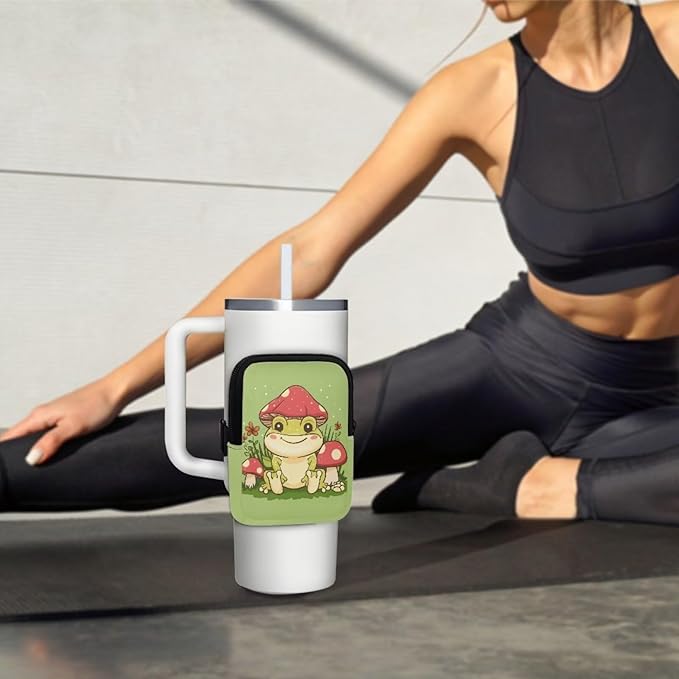 Frog Mushroom Stanley Cup Pouch with Adjustable Strap Water Bottle Storage Bag 20oz-40oz IceFlow Tumbler Pouch for Stanley Accessories
