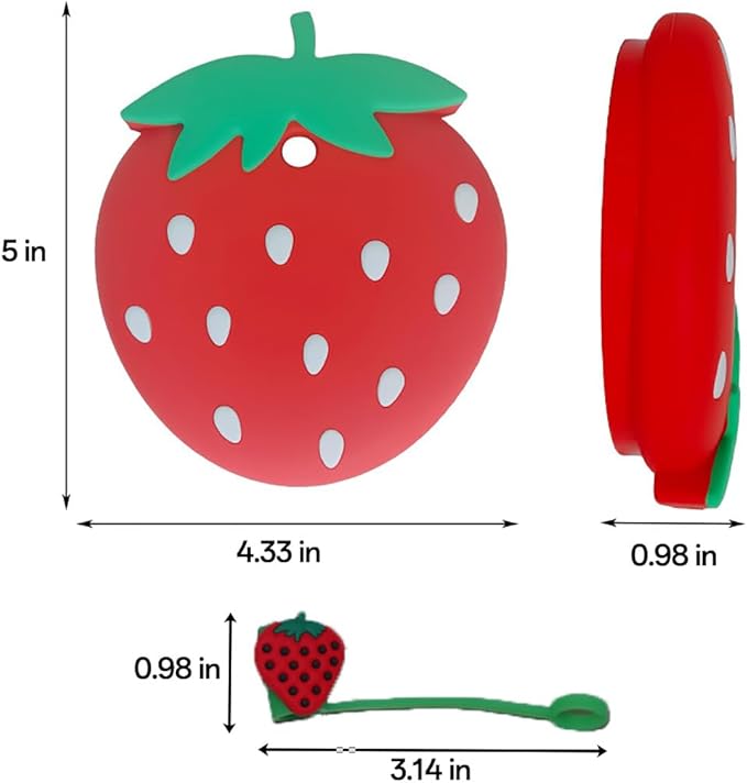 Lid Protective For 40 Oz Stanley Cup&Straw Cap,Stanley Cup Silicone Dust Cover,Stanley Cup Cute Accessories,Strawberry/Avocado/Pink Flower Design (Strawberry)