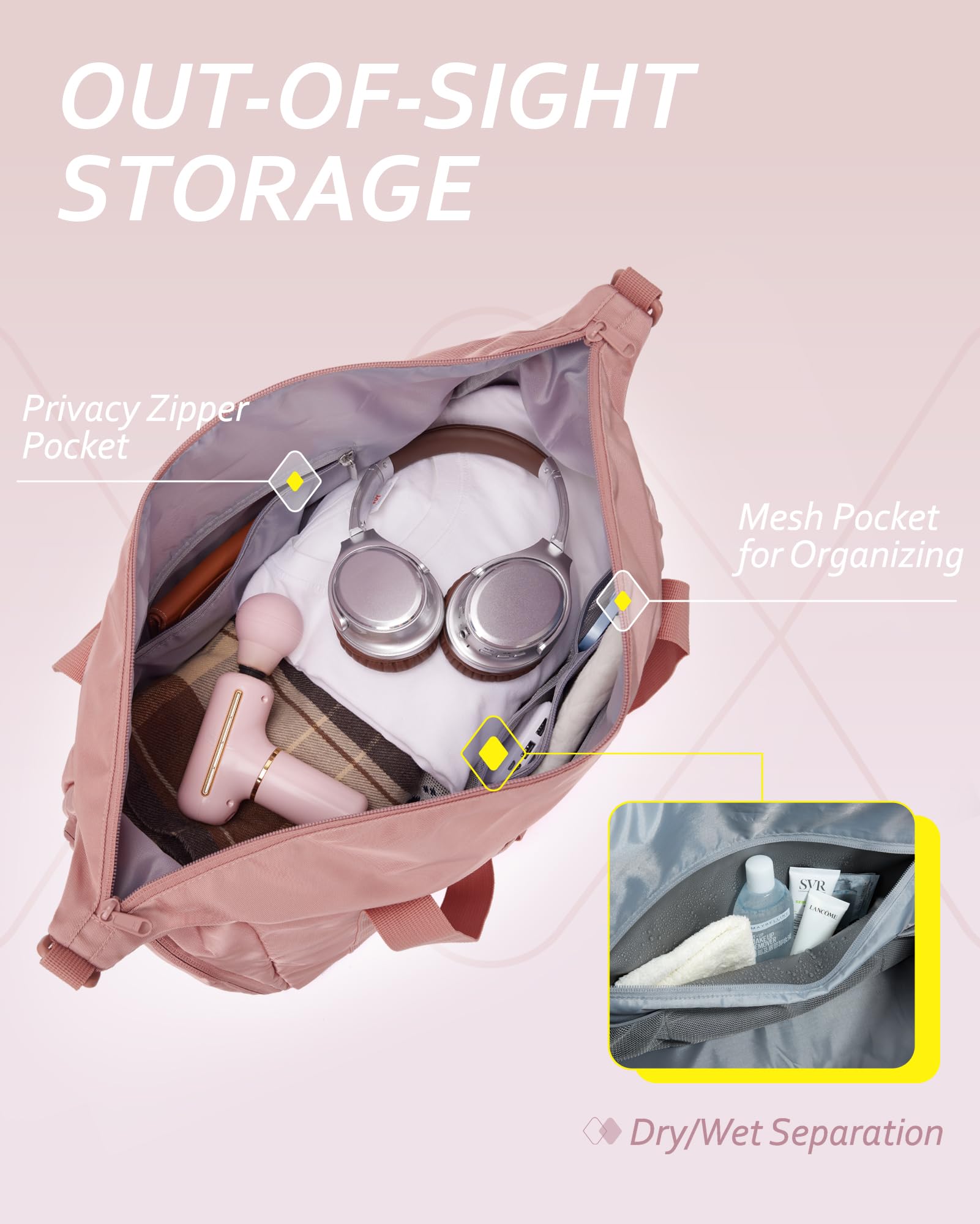 BAGSMART Small Gym Bag With Shoe Compartment & Wet Pocket, Lightweight Sports Travel Duffel Bag, Carry On Bag Weekender Overnight Bag, Water Resistant Sports Gym Tote Bags Swimming Yoga, Dark Pink