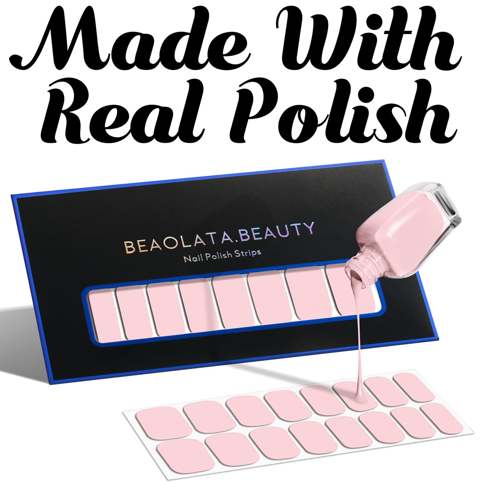 Beaolata Nail Polish Strips, 32PCS Salon Quality Wraps, Long Lasting Gel Nail Stickers for Women Easy Apply& Remove (Net Grey White)