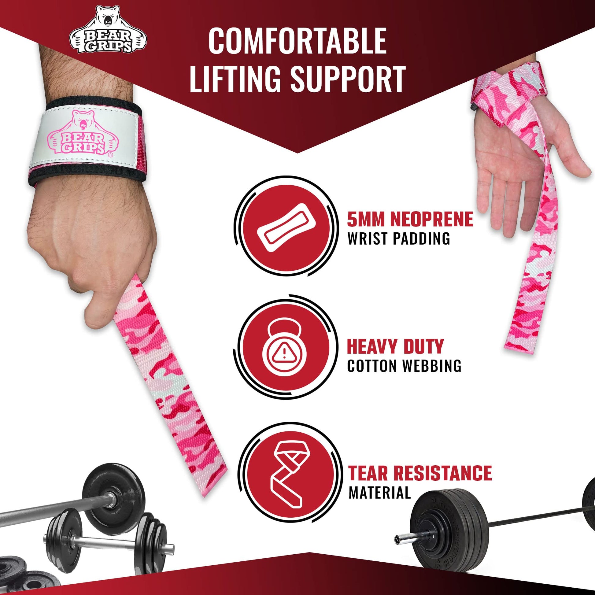 Bear Grips Lifting Straps Gym, Wrist Straps for Weightlifting, Gym Straps, Weightlifting Straps, Deadlift Straps, Weight Lifting Straps for Men, Weight Straps Lifting Women, 2 Lifting Strap Pink Swirl