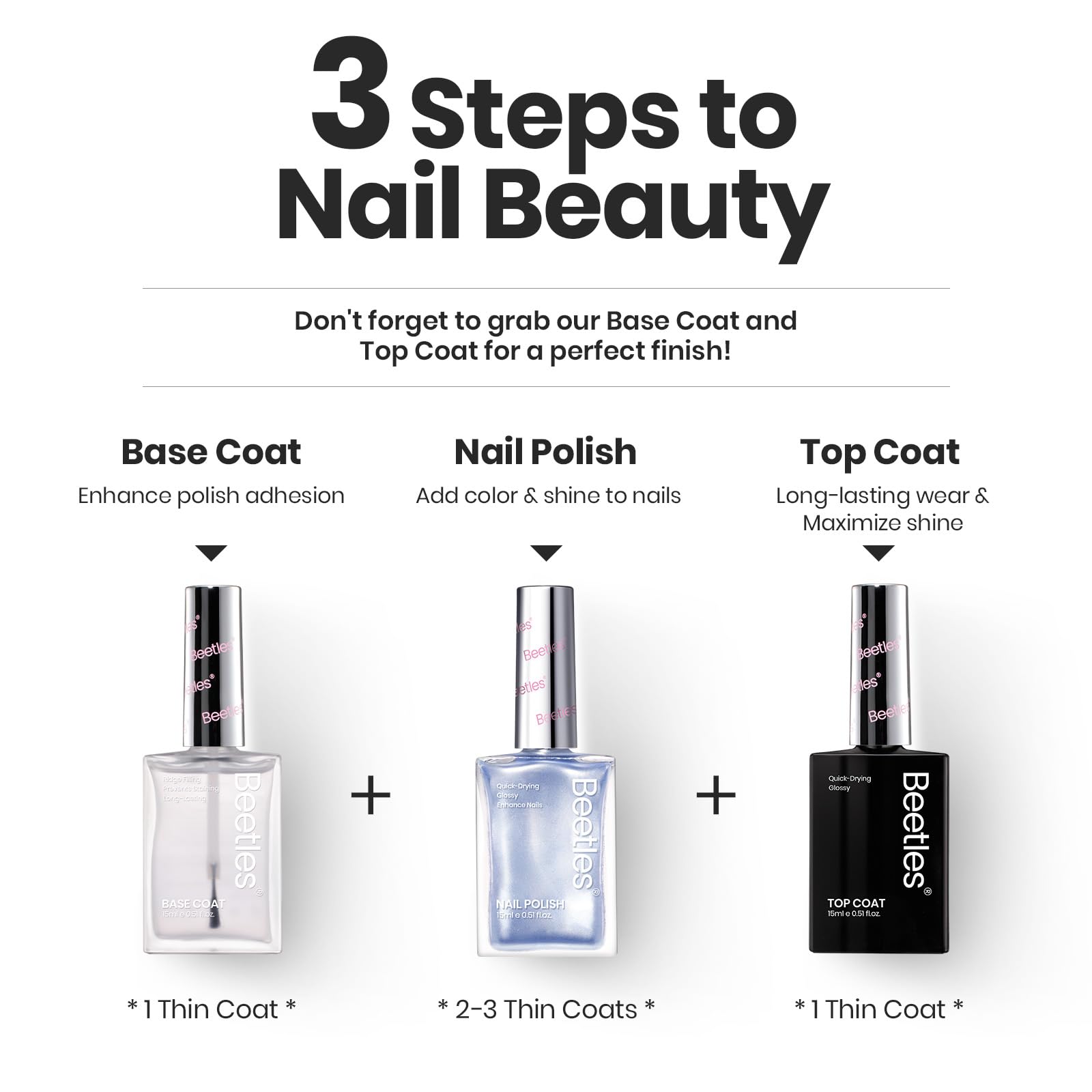 - 【Long-Lasting Shine】Beetles quick dry nail lacquer enjoys a bright color and high gloss that lasts for at least 8 days without discoloration or paint peeling. It is very durable, and is an ideal choice for festivals or special occasions, as well as an ideal gift for nail lovers! It need to be used with a base coat and top coat!This item does not include base&top coat, which needs to be purchased separately.