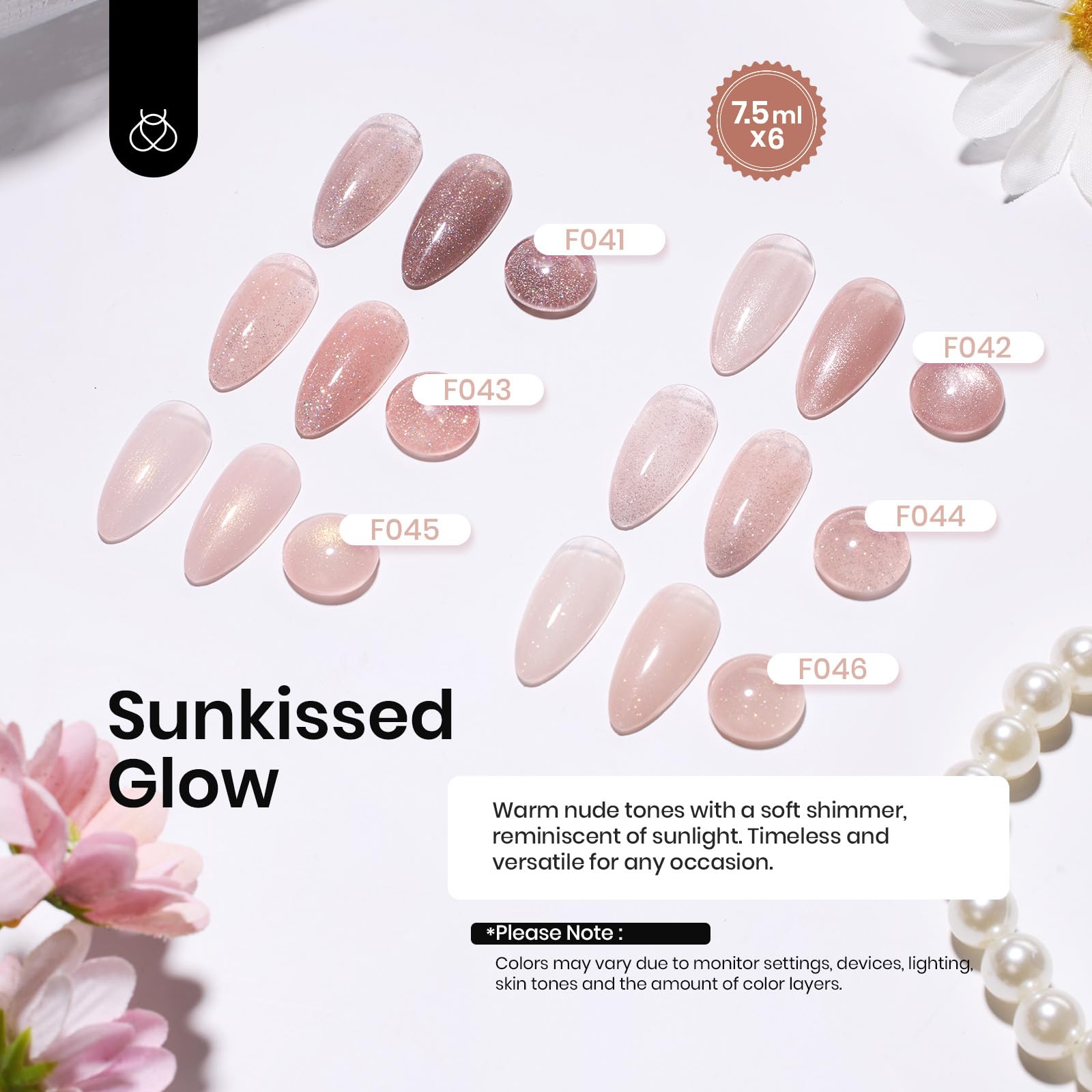 Beetles Rubber Base Color Gel Nail Polish, 6 Colors 5 IN 1 Nude Rubber Base Gel Neutral Sheer Pink Peach Glitter Gel Nail Polish for Thin Nails Soak Off Nail Art Design Gifs for Women