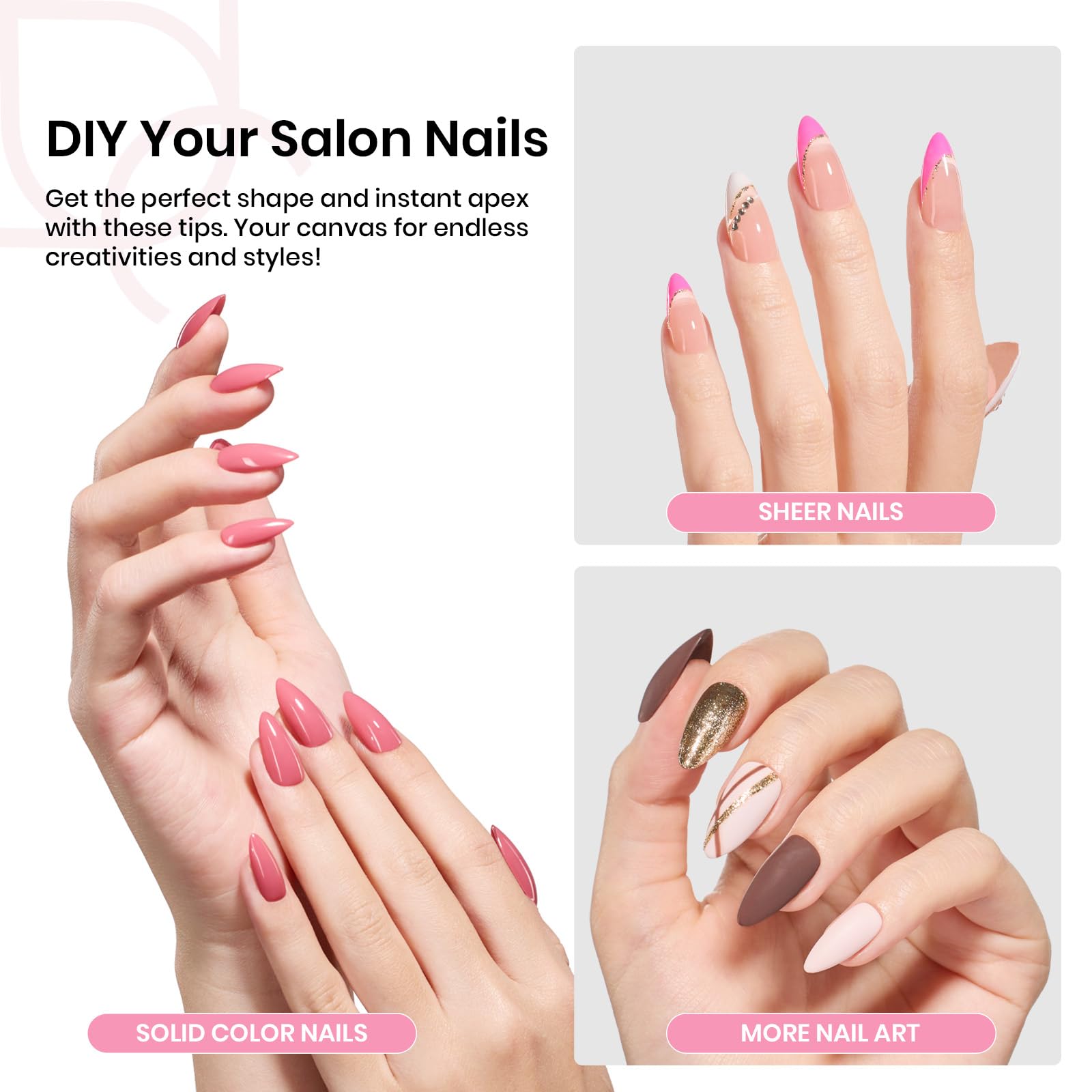 - 【Increase customer satisfaction】: These acrylic nail tips, medium almond ideal for flat nails, leave no gaps, air bubbles, or shape irregularities. Plus, they're odorless and leave no powder residue, eliminating common nail complaints.
