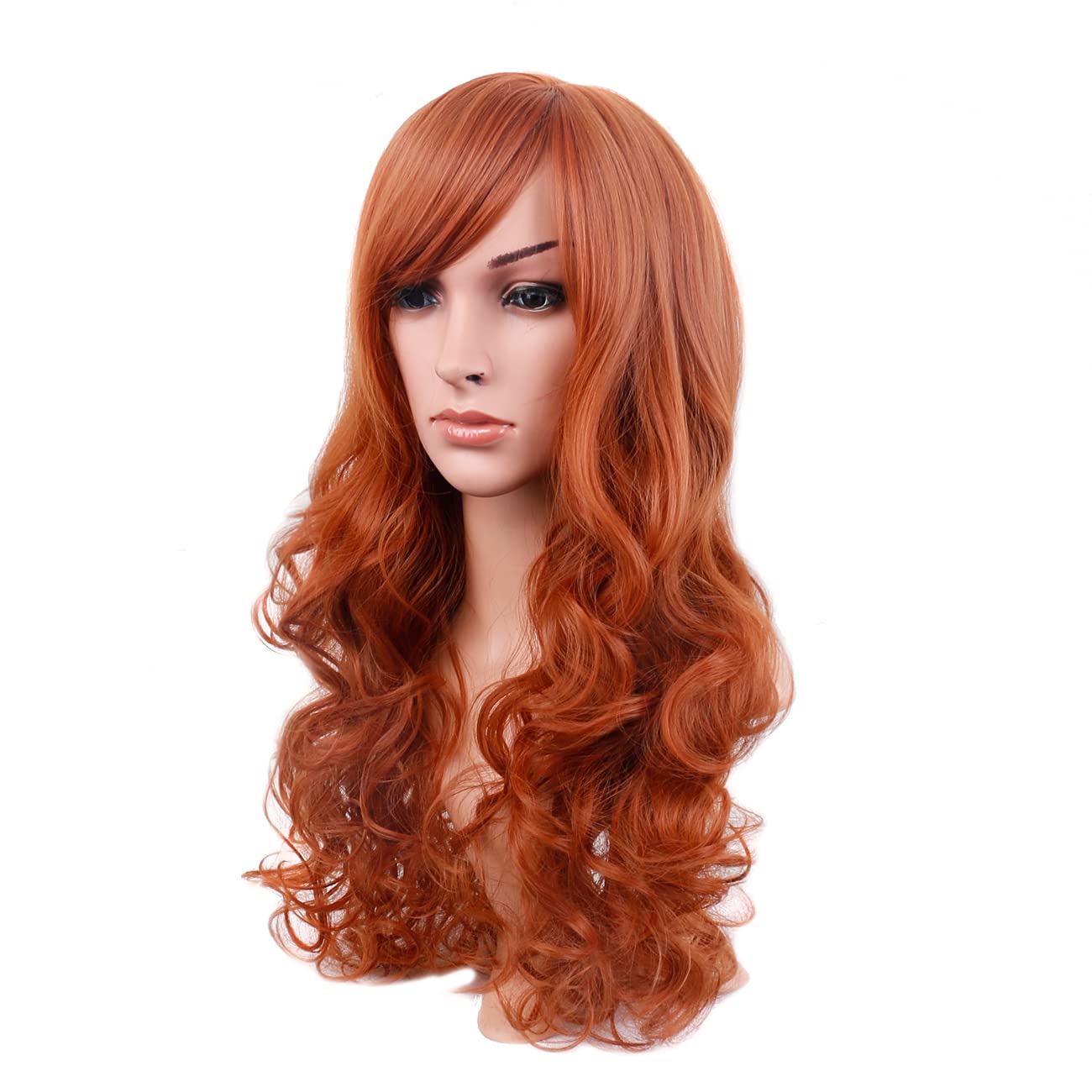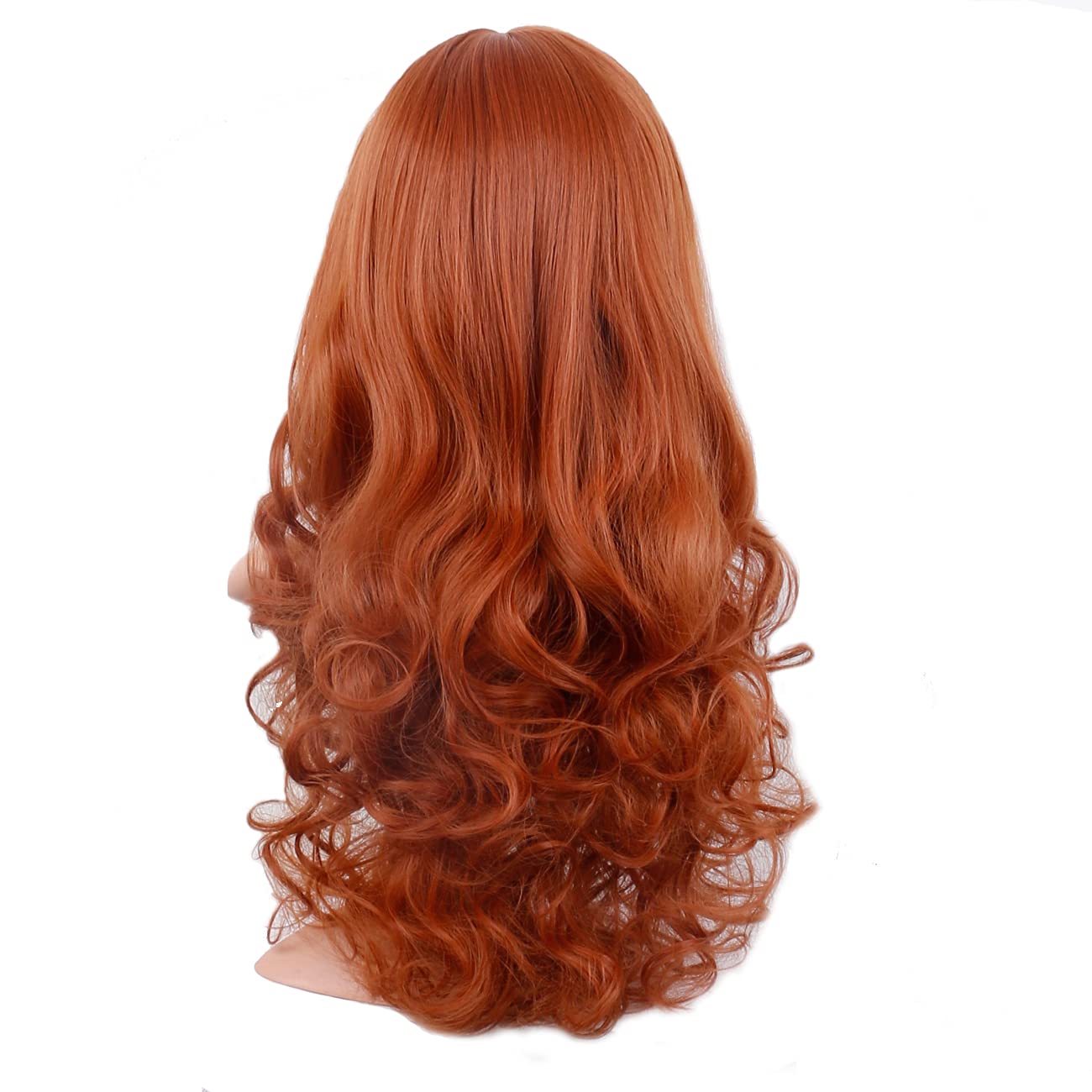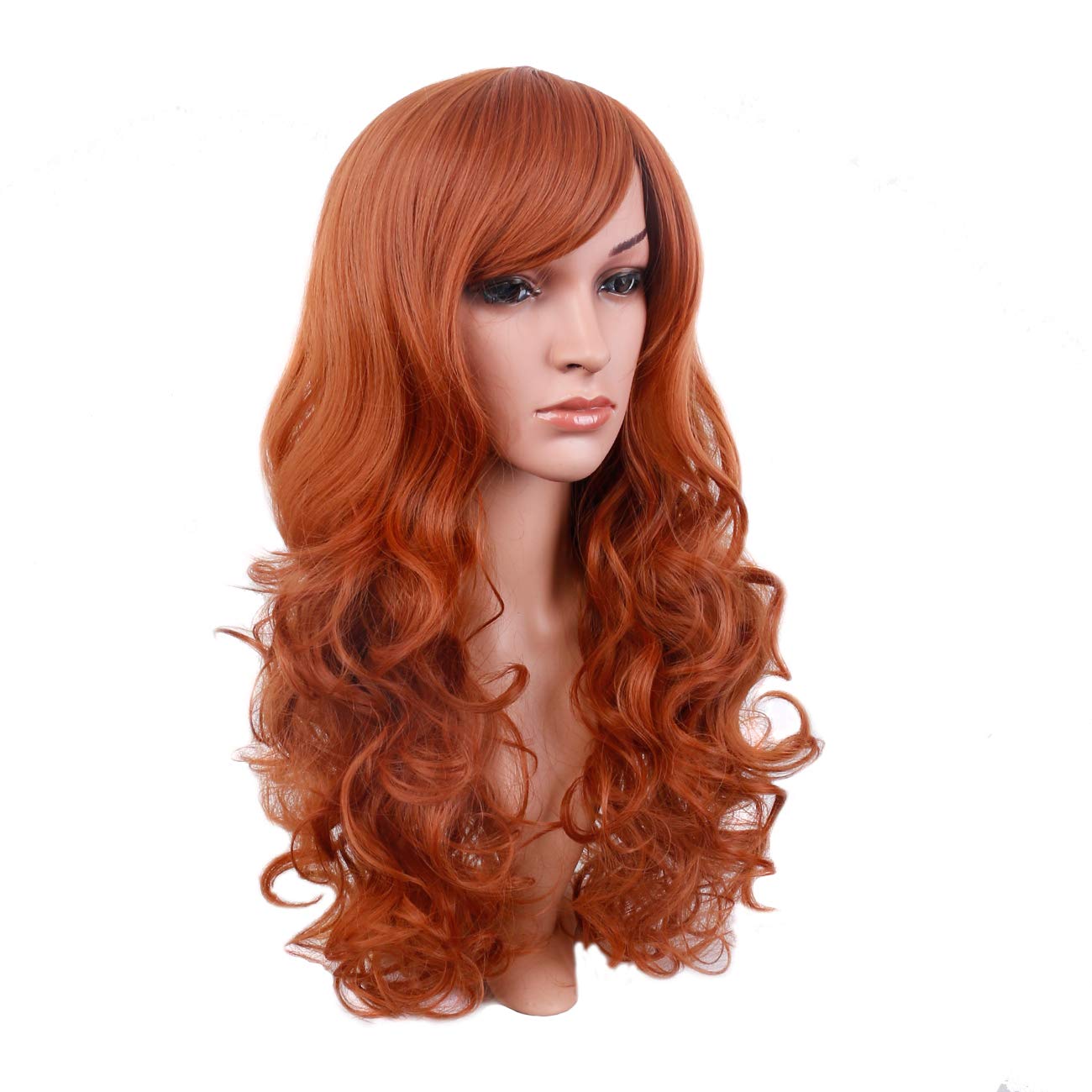 BERON Dark Orange Wig Long Curly Wigs with Bangs Orange Wig Long Wavy Wig Orange Wigs for Women Long Wig Dark Orange Wig with Wig Cap
