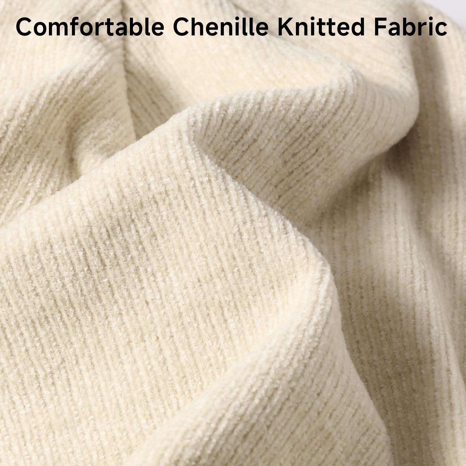 - Warm and Comfortable: The winter beanie hat is made of high-quality Chenille fabric. The soft thermal knit beanie making you feel warm and cozy in cold weather; Soft and Breathable Skull Cap keeps your head and ears warm