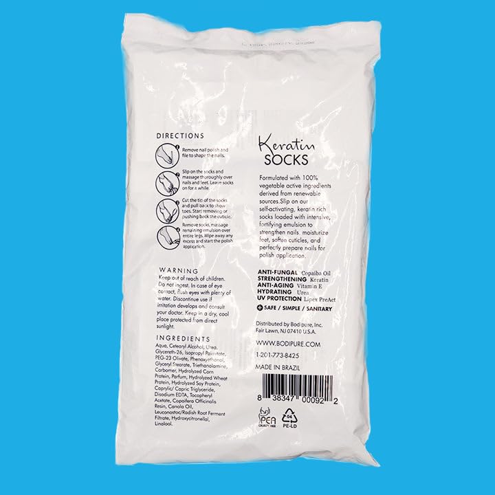 Bodipure All-In-1 Moisturizing Foot Mask, Keratin & Vitamin E Foot Mask for Dry Cracked Feet, Callus & Heel Softening, Easy-to-Use Pedicure Foot Repair, Chemical-free Feet Treatment 12 Pairs