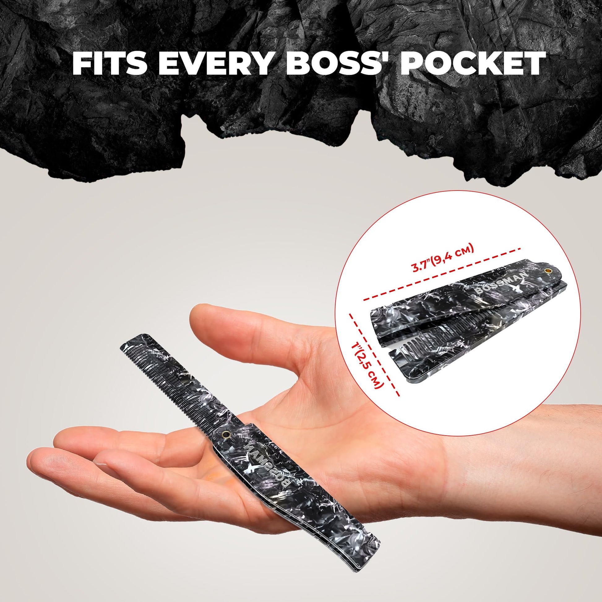 - Perfect-Sized Comb: Our fold-up beard, mustache, or hair comb is the perfect size to fit in your pocket or inside a travel case to not take up any room. The handle is 3.5” to fit perfectly in your hand and the teeth are 3” in length to tackle a full head of hair, an entire beard or just an unruly mustache.