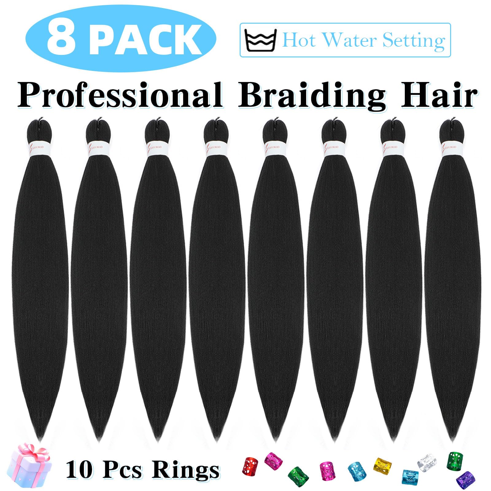 - Hair For Braiding Package: You will get 8 pack of braiding hair pre stretched and 10 pcs rings; 16-30 inch available and multiple colors braiding hair for you to choose.