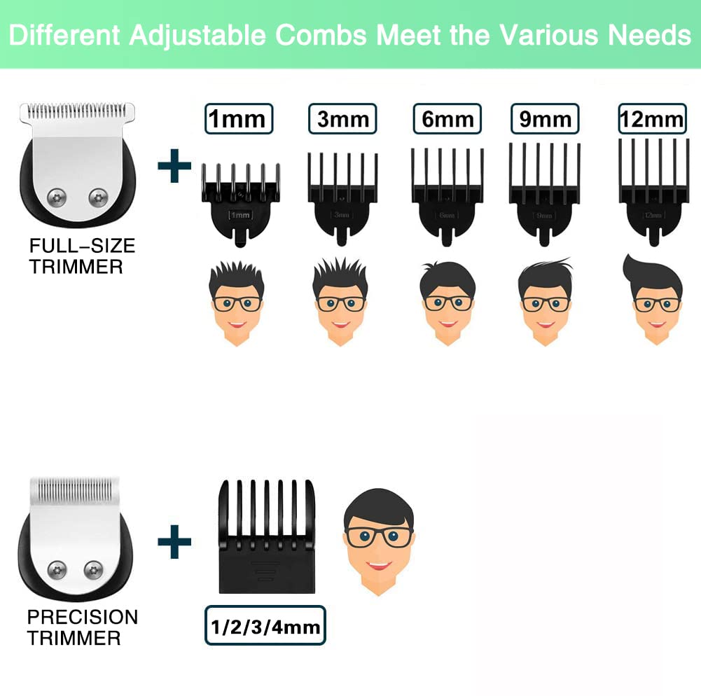 - All in One Beard Trimmer for Men Kit: Our Brightup Manscape all-in-one kit is designed for precision beard trimming and includes 6 trimmer heads and a stand base for easy organization. It also comes with 6 hair trimmer combs that allow you to control the length and style of your beard, body, face, nose, ear, eyebrows, sideburns, neck, groin, leg, pubic hair, ball or other private parts.