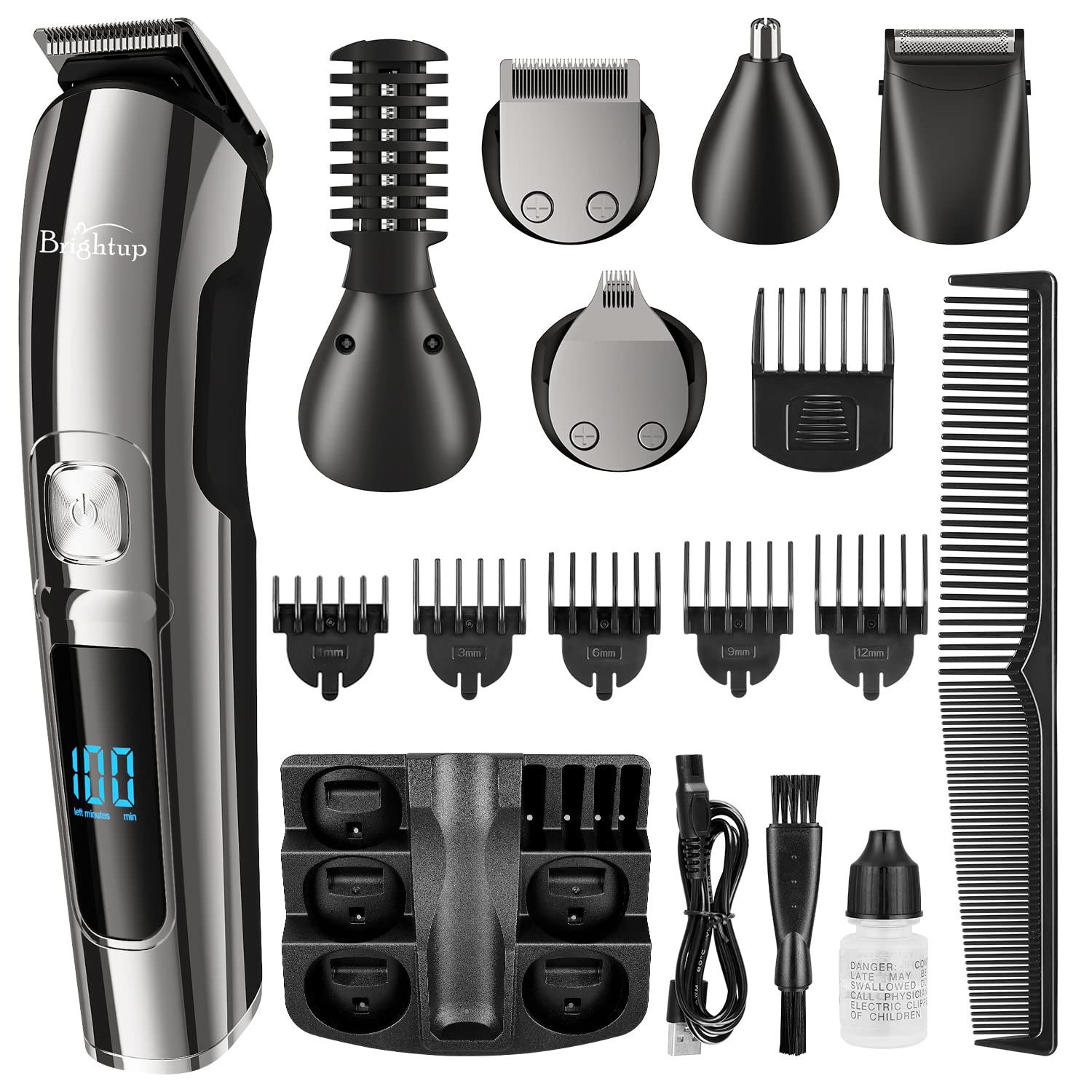 Brightup Beard Trimmer for Men - Electric Razor & Shaver, Cordless Hair Clippers Trimmers Set, IPX7 Waterproof Mens Grooming Kit for Shaving Face, Mustache, Body, Ear, Nose Hair Trimmer, Gifts for Men