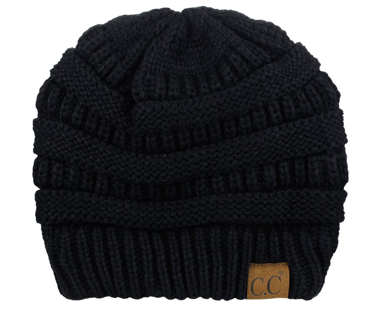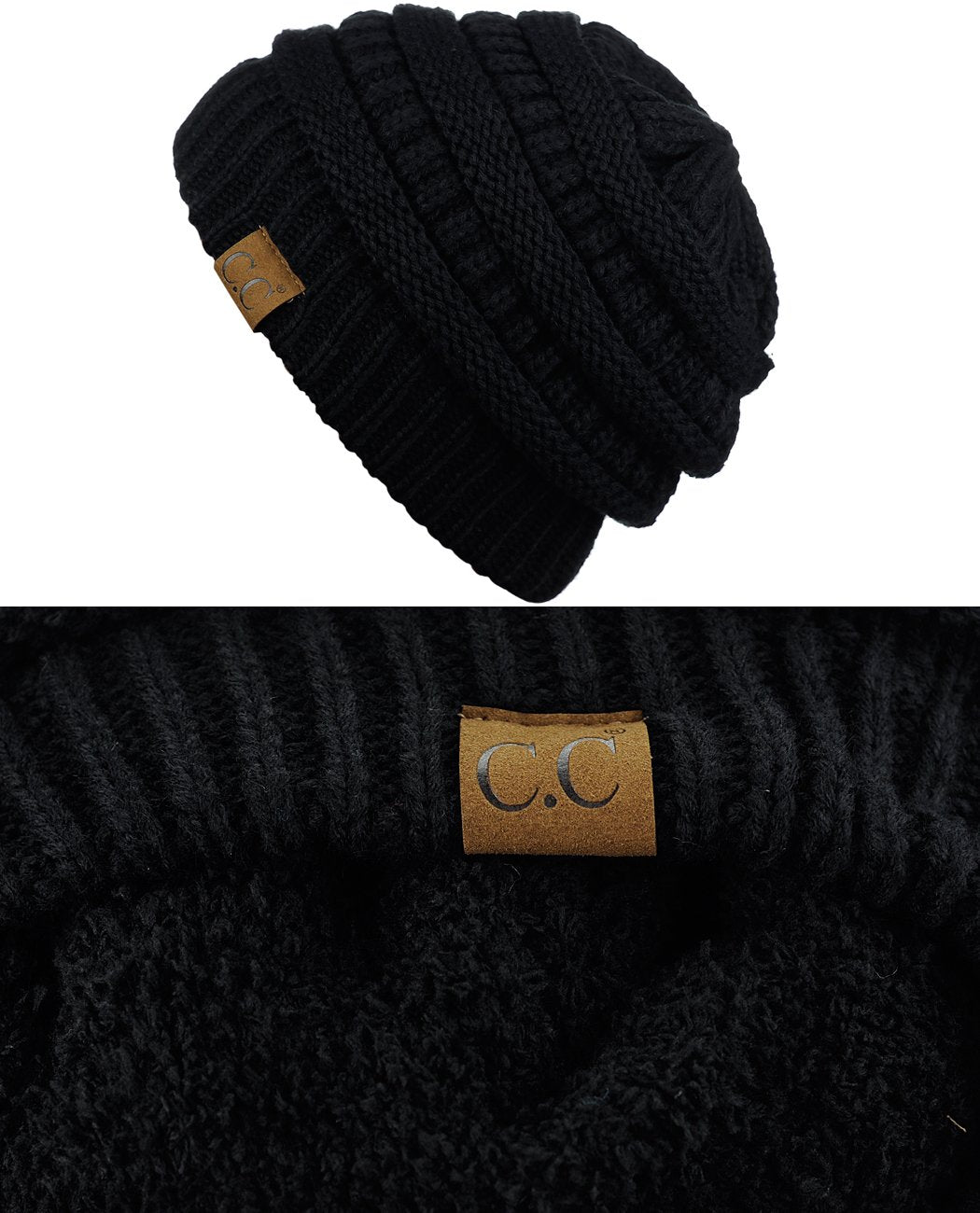 C.C Unisex Chunky Soft Stretch Cable Knit Warm Fuzzy Lined Skully Beanie, Black