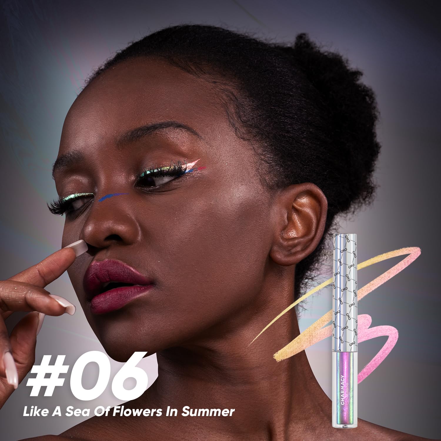 - CHAMELEON LIQUID EYELINER: Charmacy eyeliner is designed for multi-colored eye makeup, it's change to 2-3 colors when viewed from different angles with the light. Highlight the eye contour and make you be the attention-catcher in each event.
