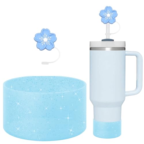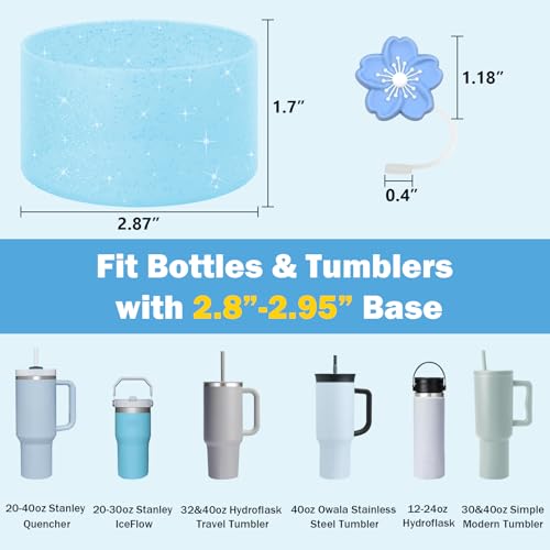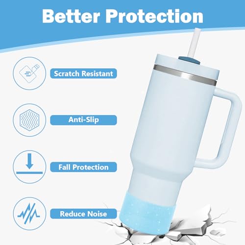 CHEMLLC Glitter Bling Silicone Boot for Stanley Cup 20 oz 30 oz 40 oz, Protector Cover for Stanley Cup Bottom, Cup Accessories Straw Cover (Bling Blue)