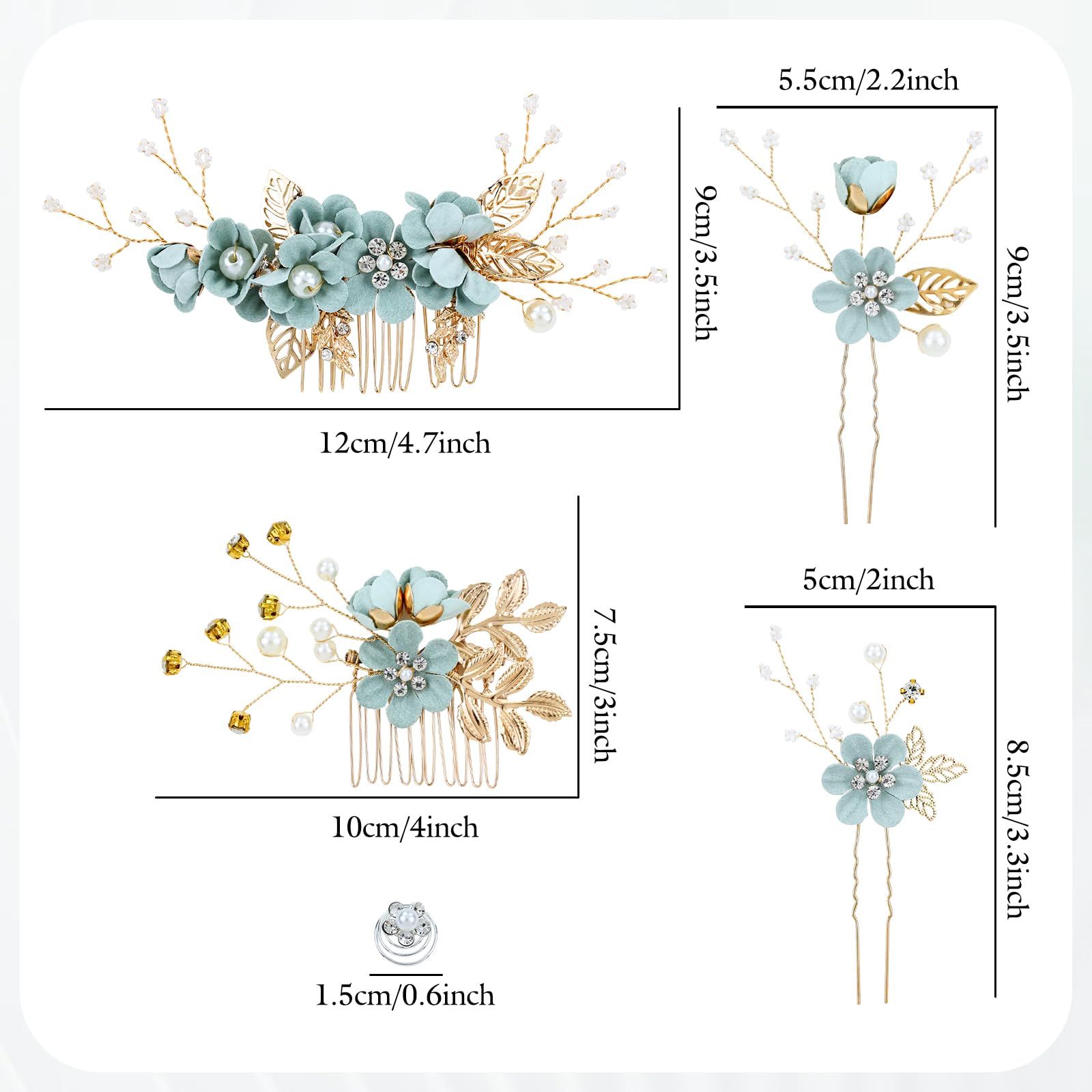- Versatile Sizes and Styles: With a variety of sizes and styles, our flower wedding headpieces cater to all your hairstyle needs. From the graceful flower hair side combs to the delicate U-shaped flower hair pins and the enchanting twist spiral hairpins, our collection offers endless possibilities to create breathtaking hairstyles for your special day. What You Get: 18pcs light green flower wedding hair accessories in total as shown in the photo.