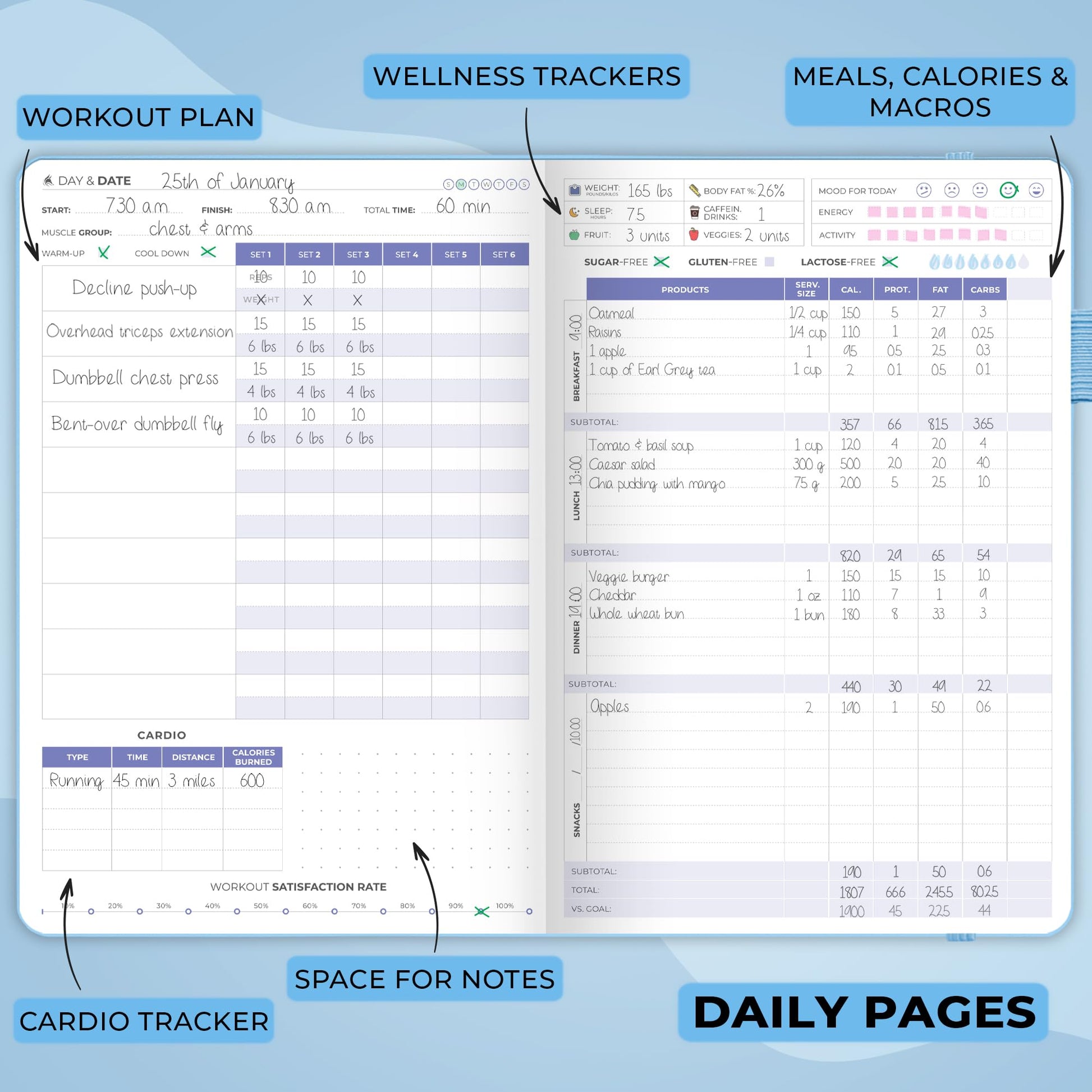- 60-DAY SATISFACTION GUARANTEE: If you aren’t satisfied with your food & workout journal for women, we want to hear about any issues you have with fitness log book. Reach out to us about your workout planner for women, so we can provide a solution.