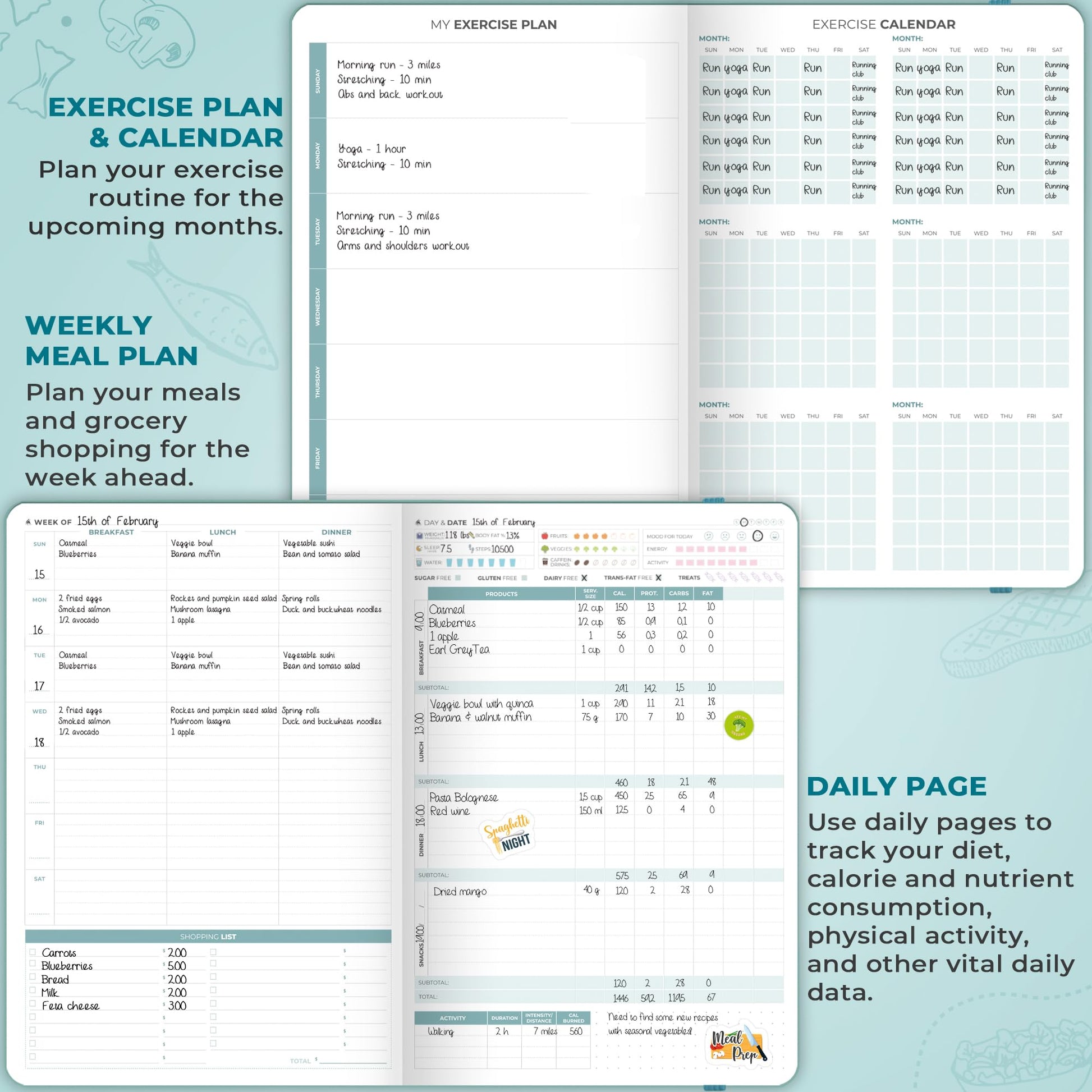 Clever Fox Food Journal Pro – Diet & Wellness Planner for Women & Men – Weight Loss Diary with Calorie Tracker – Food Log for Tracking Meals, Exercise & Weightloss - Undated, 7" x 10" Aquamarine