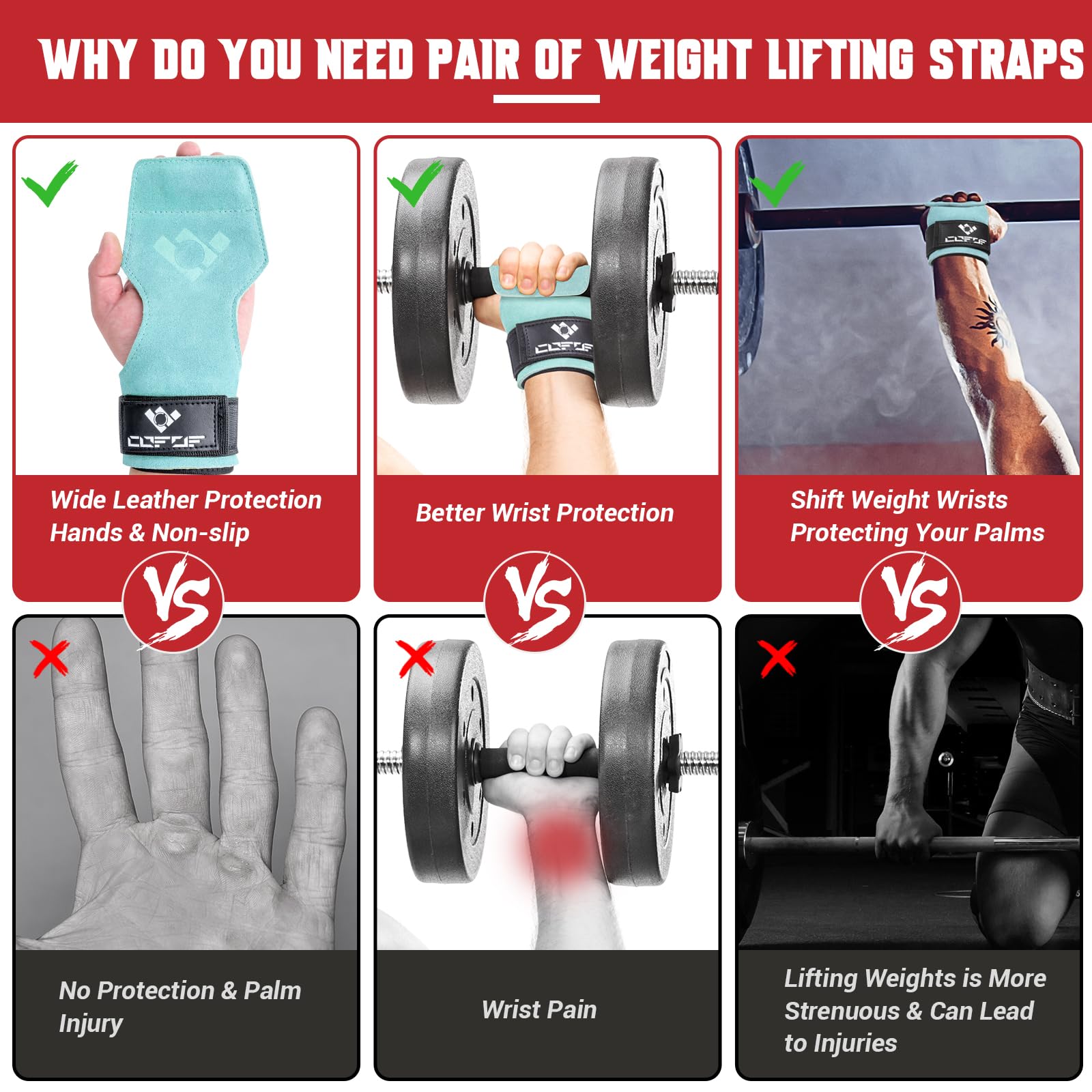 - Enhanced Grip: Professional leather deadlift straps can protect your hands from not only preventing calluses, but also peeling off existing calluses on your hands. Lifting straps take the pressure off your wrists and hands and help you lift heavier weights. More importantly, it improves your ability to exercise larger muscle groups.