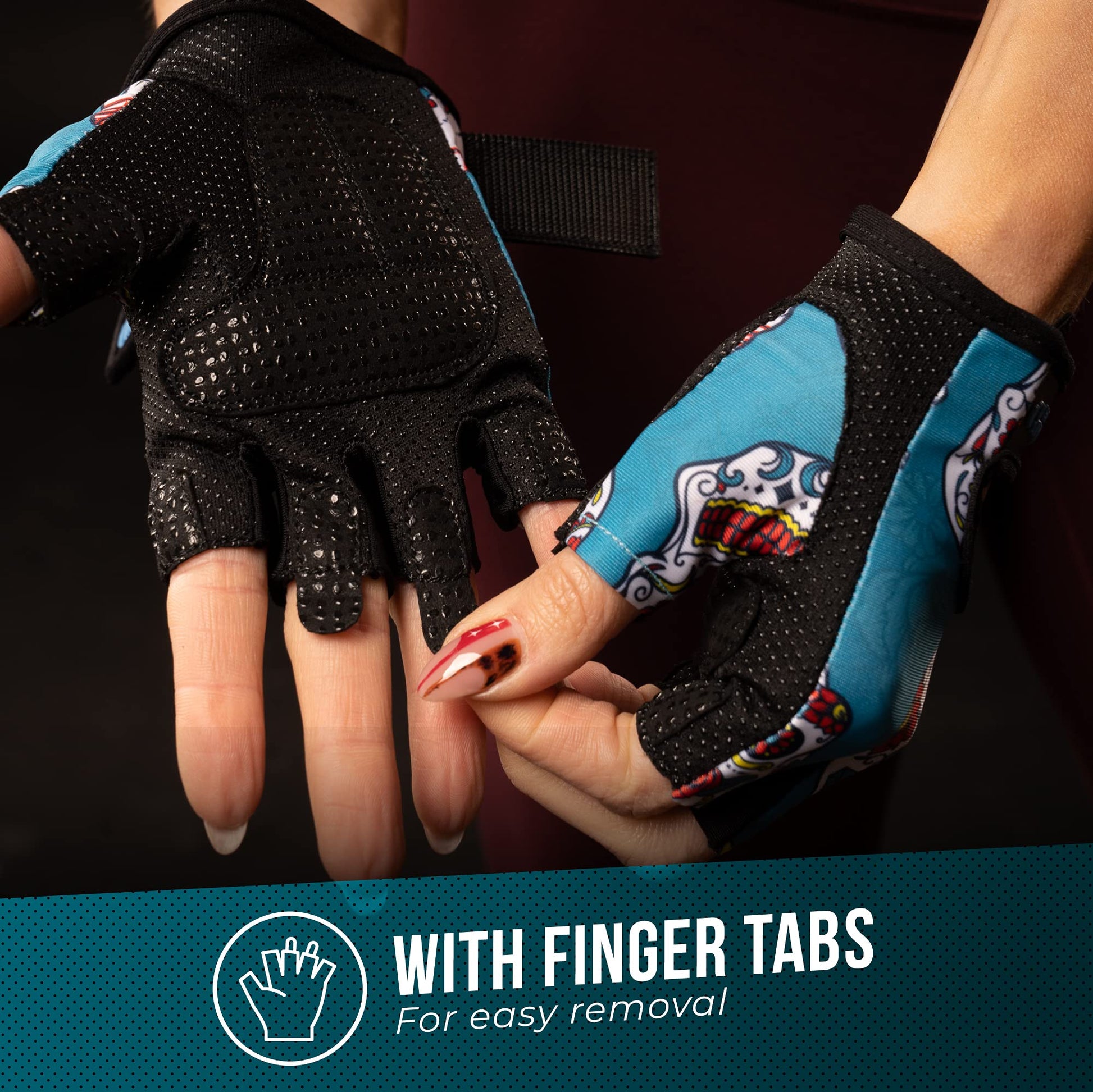 - DESIGNER PRINT - The sugar skull print design on these fitness gloves brings an extra flare to your style. Classic and modern colors of our workout gloves for women allow you to mix and match with different outfits. Our weight lifting gloves for women really add a dazzle to your gym attire. Now, you can look great and stylish while staying fit!