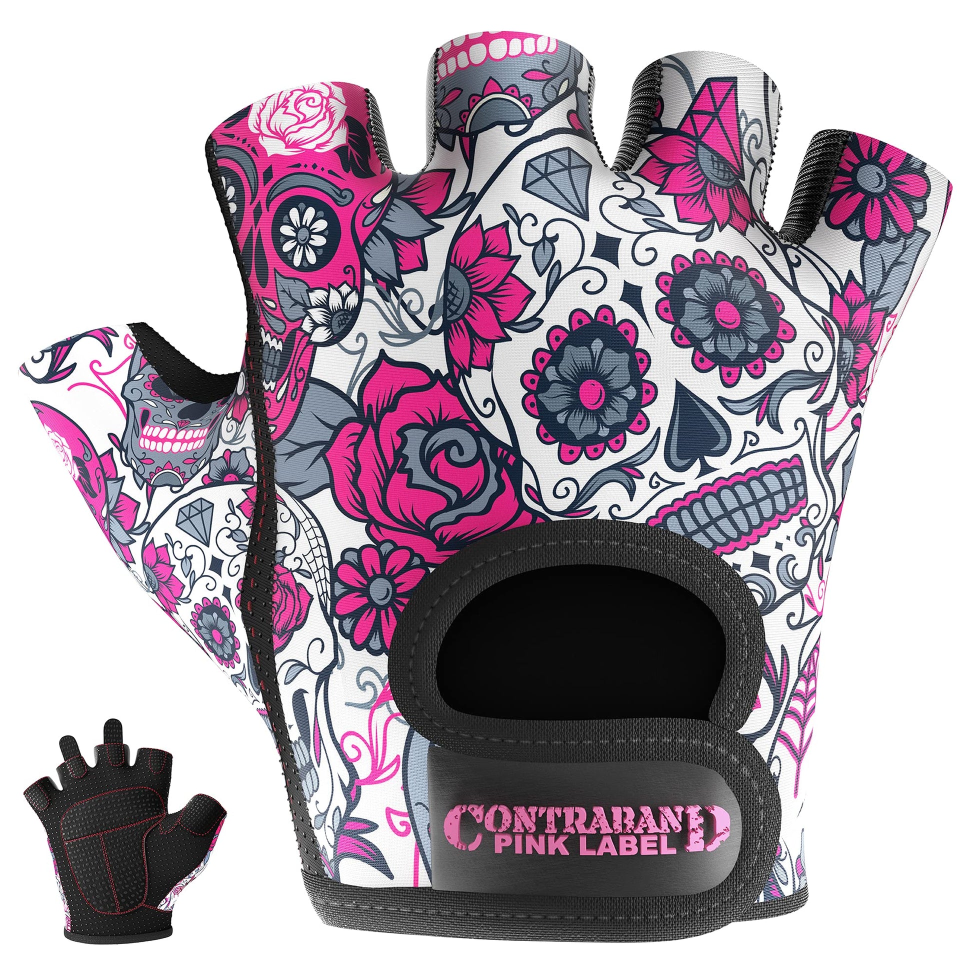 Contraband Pink Label 5237 Womens Designer Workout Gloves | Sugar Skull Print w/Grip-Lock™ Padding (Pink, X-Small)