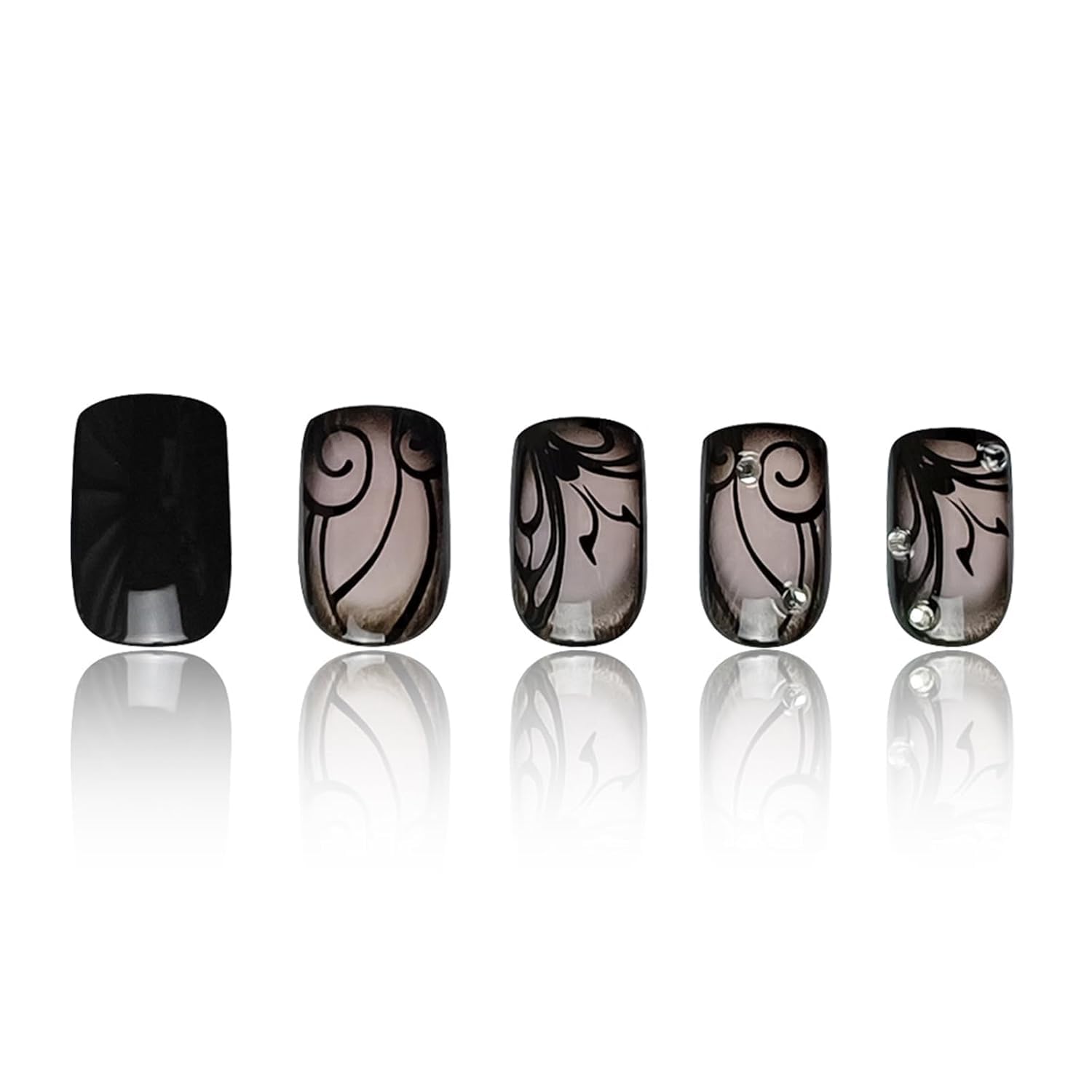 Curvlife Press on Nails Acrylic Fake Nails with Design Full Cover False Nails for Women Reusable Nail Kit with Nail Glue Adhesive Tabs Nail File (Black texture, 30pcs)