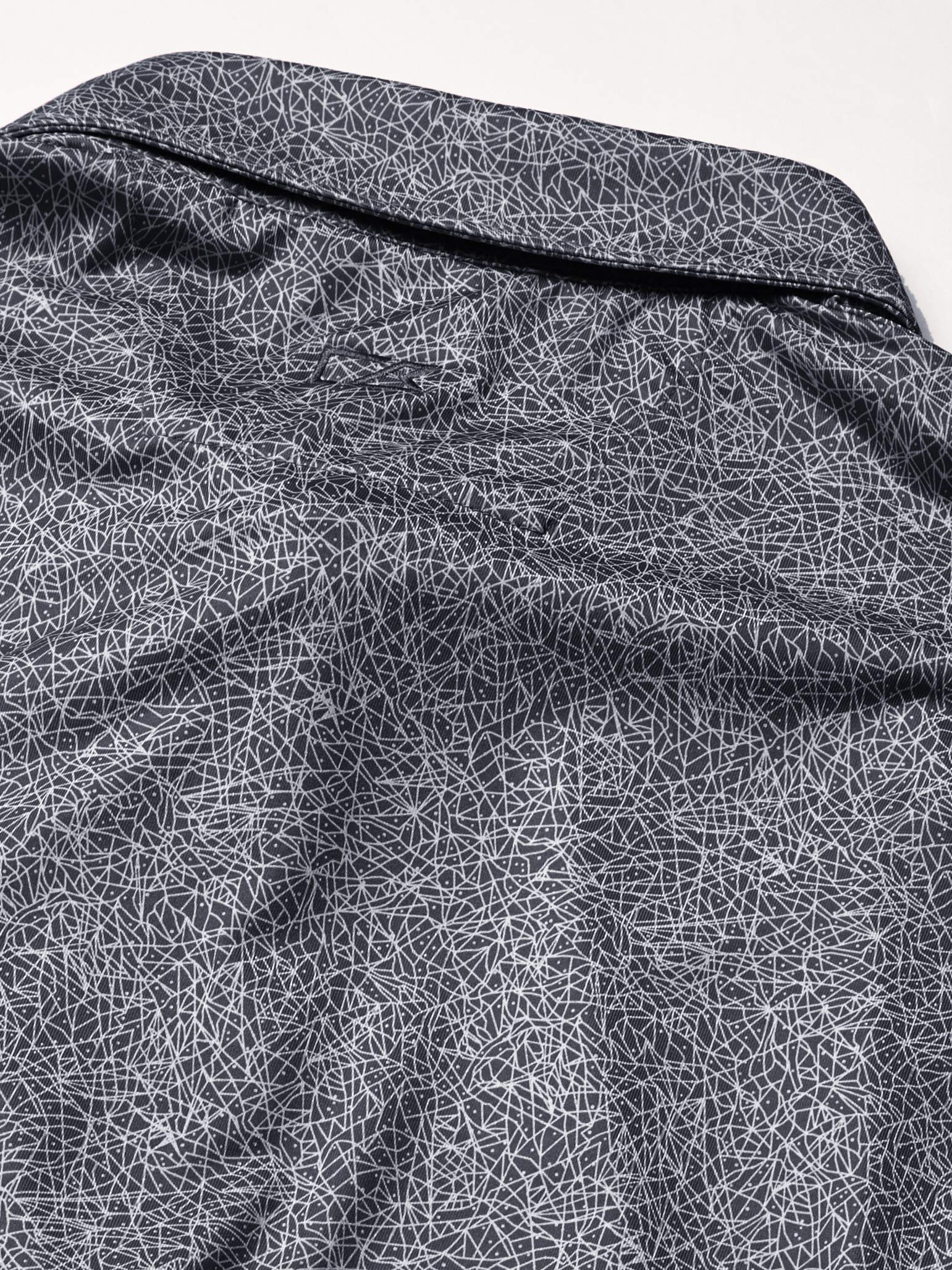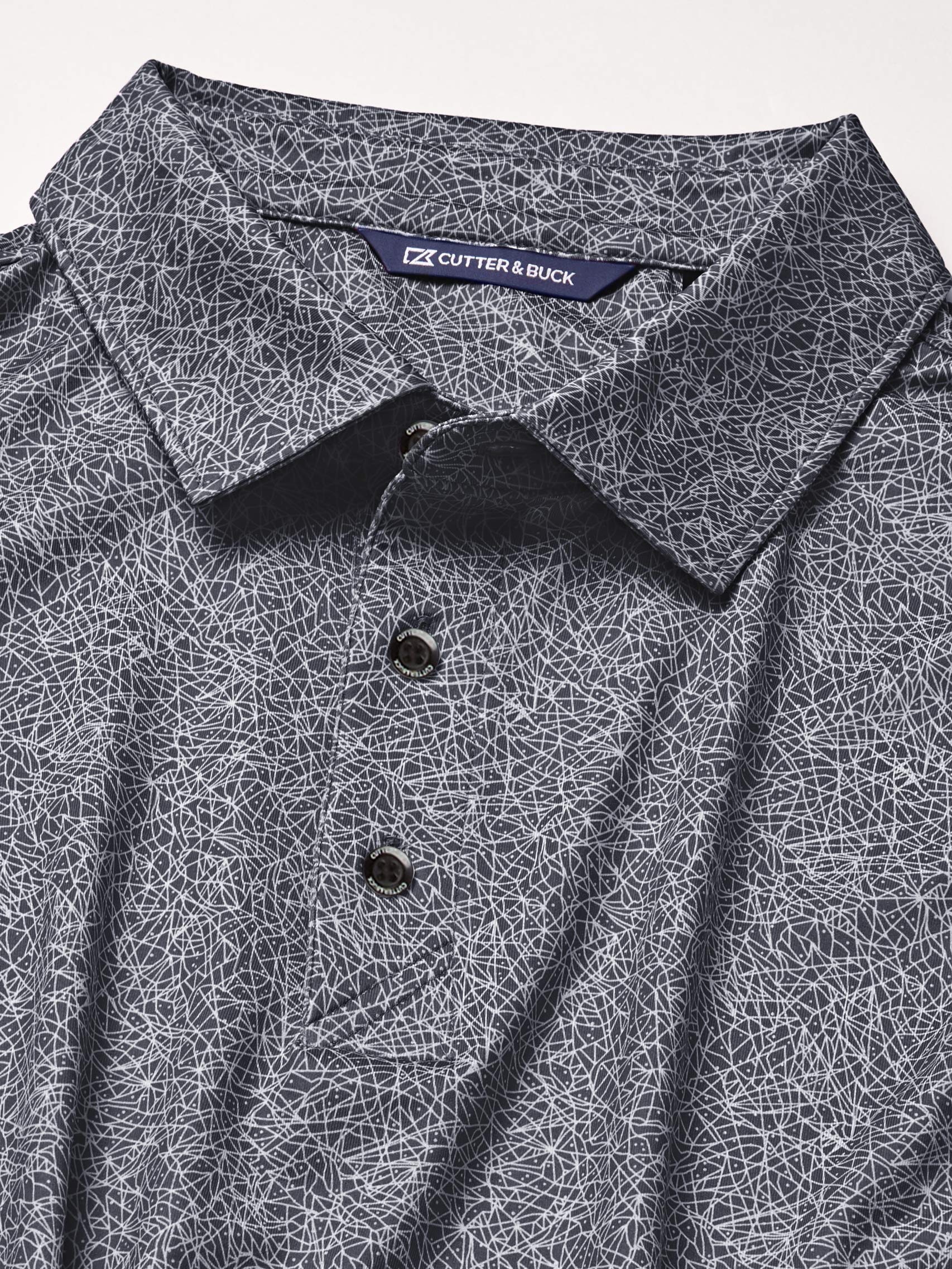 Moisture wicking, UV protection of 50+ UPF, Constellation print on jersey fabric, Self collar & stand, 3-button placket with angle stitch, Open sleeves, Straight hem, Side vents, CB logo buttons, Dyed to match logo buttons, CB pennant embroidery at back half moon, Imported, Machine Wash.