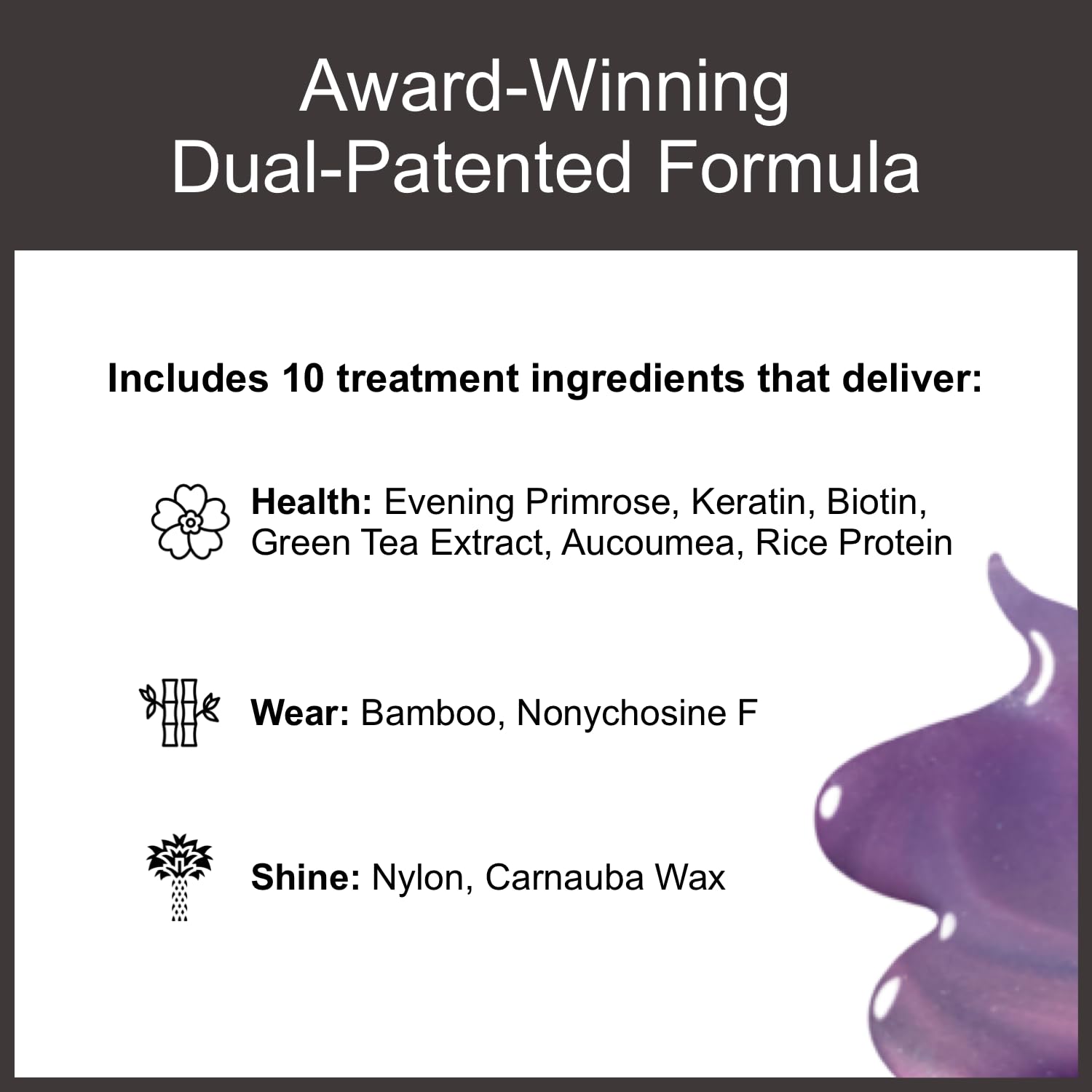- Award-winning nail polish delivers long lasting gloss and cushion of a gel manicure without damaging nails