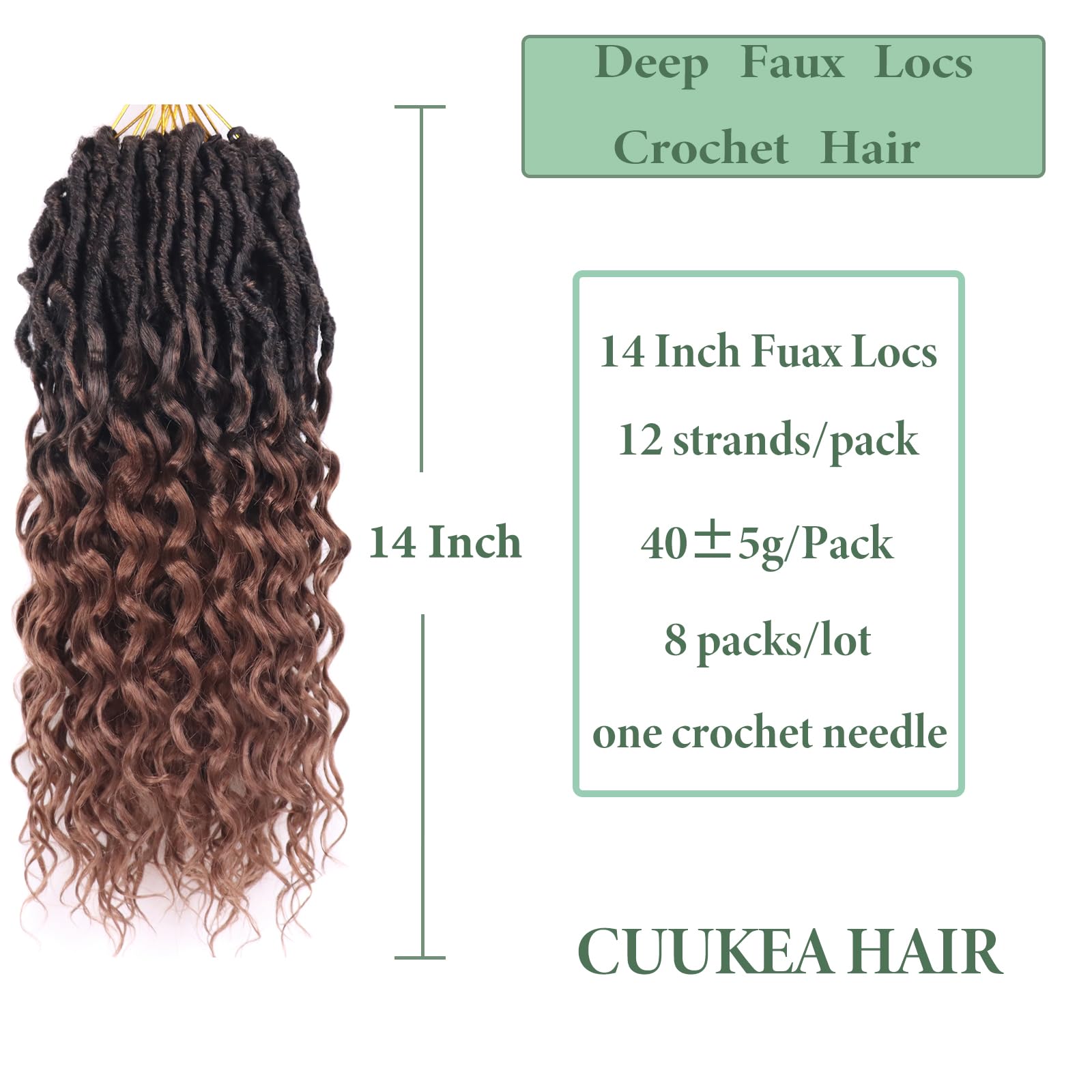 - Faux Locs Material:Deep Faux Locs Crochet Hair is made with high-quality, synthetic hair fibers.Natural looking with blends well,softness,lightweight and comfortable to wear.The natural-looking texture mimics real hair,ensuring a seamless blend with your natural hair,Making it the perfect choice for any occasion