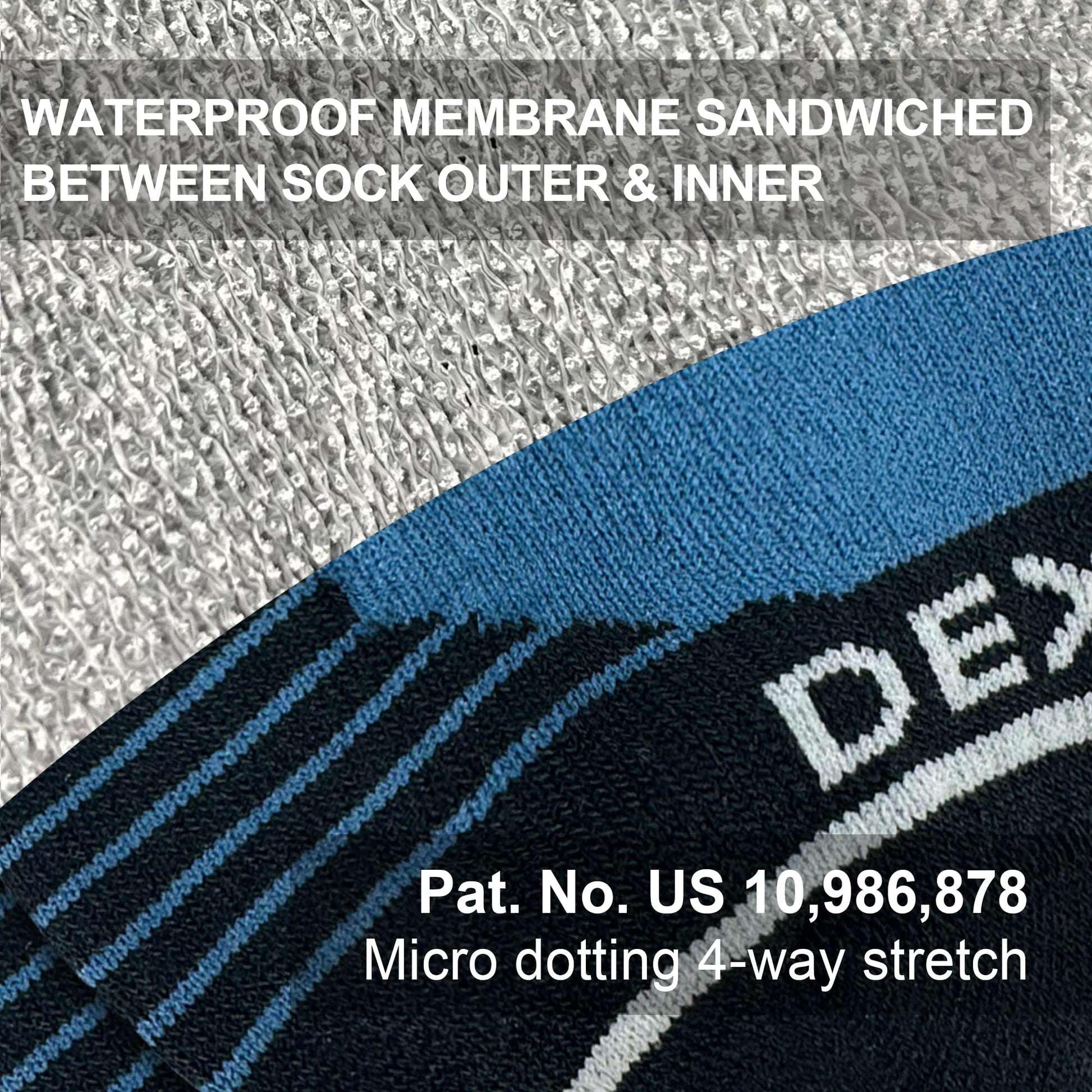 - Featuring own patented micro dotting, 4-way stretch technology, the DexShell waterproof socks are manufactured in the ISO9001-2015 quality assurance facility.