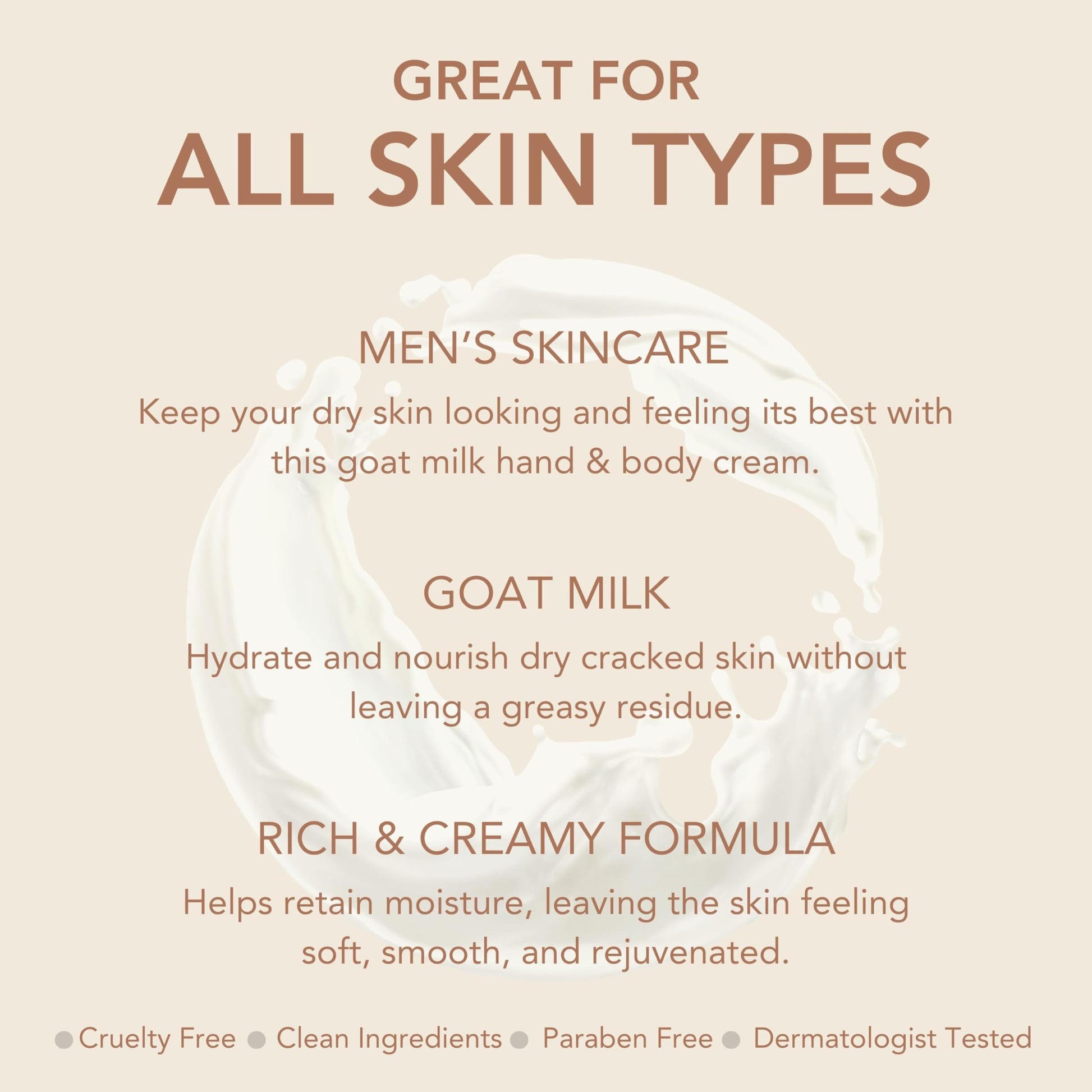 Dionis Goat Milk Skincare 3.3oz Hand & Body Cream For Men - Travel Size Hand Lotion For Hydrating & Moisturizing Dry Skin - Cruelty Free Cream Made In The USA - Paraben Free Formula