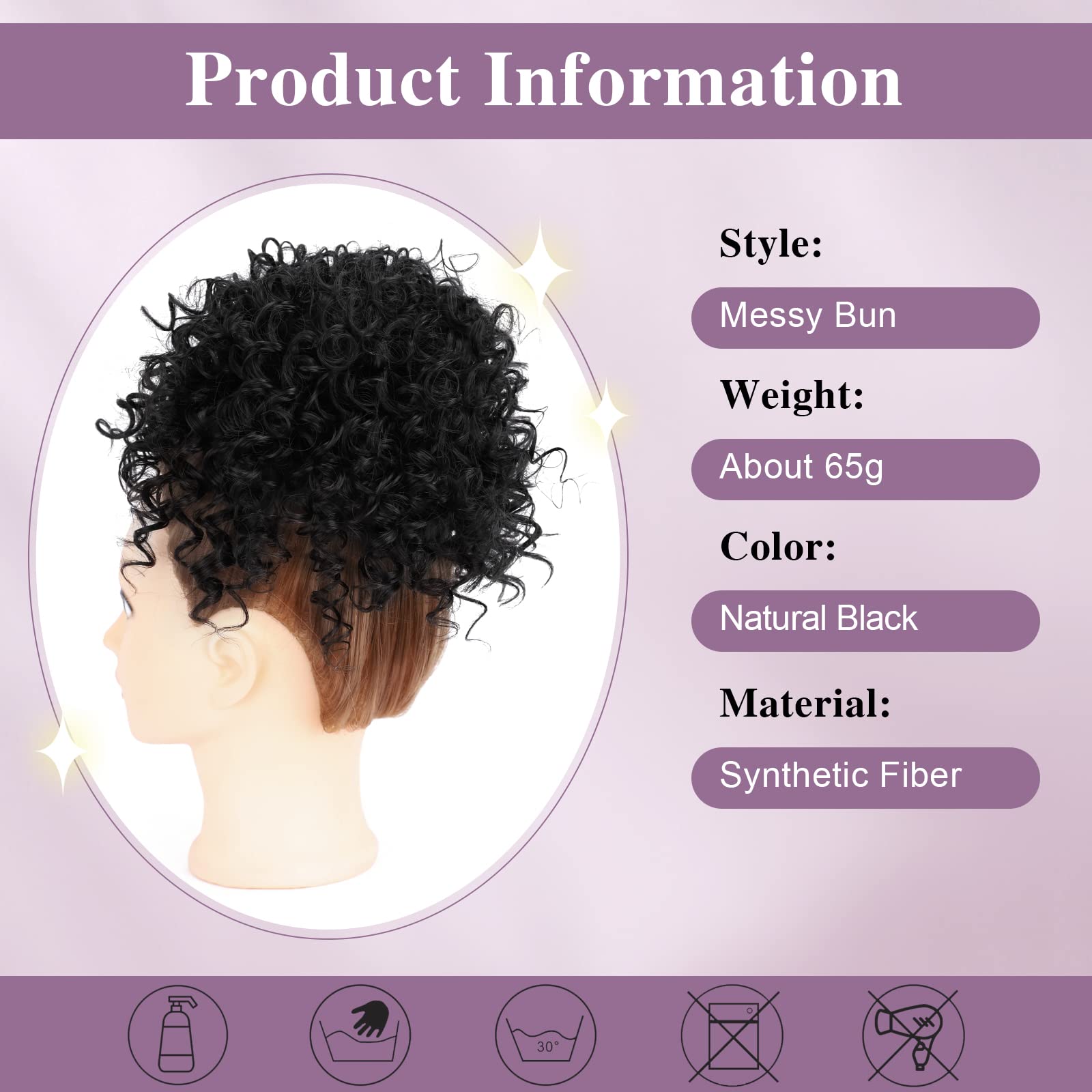 DOROJJ Curly Drawstring Ponytail for Black Women Curly hair Bun Drawstring Ponytail Extension for Women Synethetic Curly Messy Hair Bun Ponytail Drawstring Ponytail for Daily Use (Natural Black)