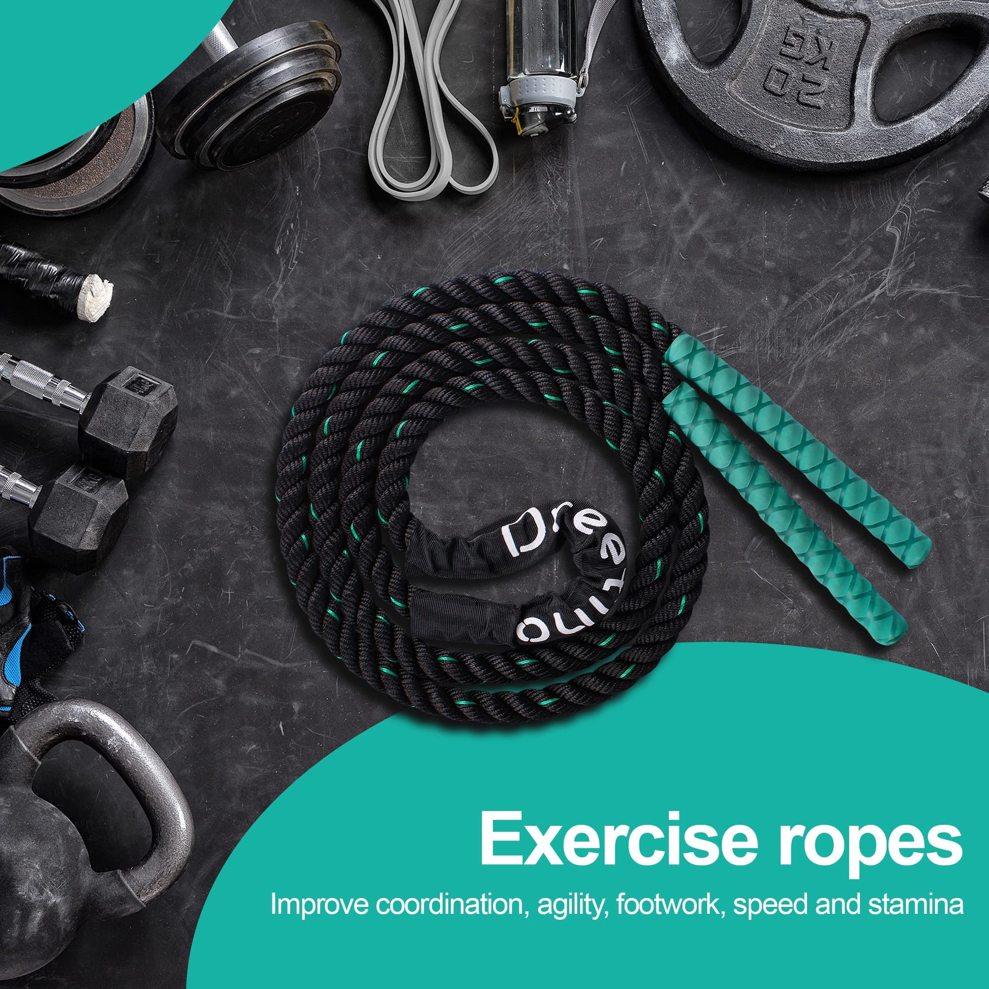 - 11FT Jumping rope Upgrade the Double-layer Handle: Made of Higher Quality Polyolefin Heat Shrinkable Material. High-Quality Material Enhanced the Friction of the Handle and Non-slip And has a soft rubber handle for sturdy