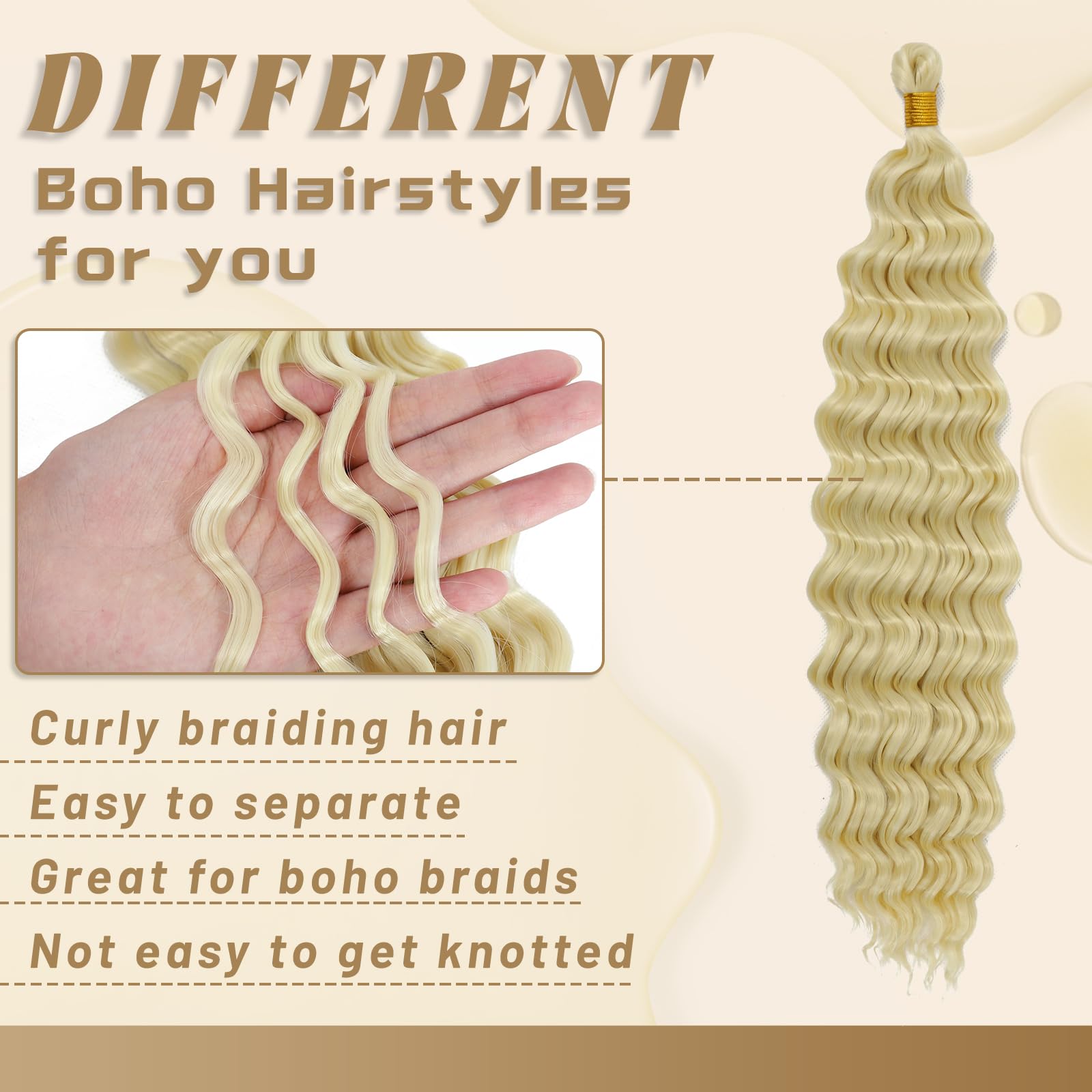 - Easy to Wear: our deep wave braiding hair is incredibly easy to wear, Just with a crochet needle, you can easily create a variety of hairstyles to suit any occasion, from casual to glamorous. Such as boho box braids, goddess box braids, knotless box braids, goddess locs and other curly crochet hair styles.