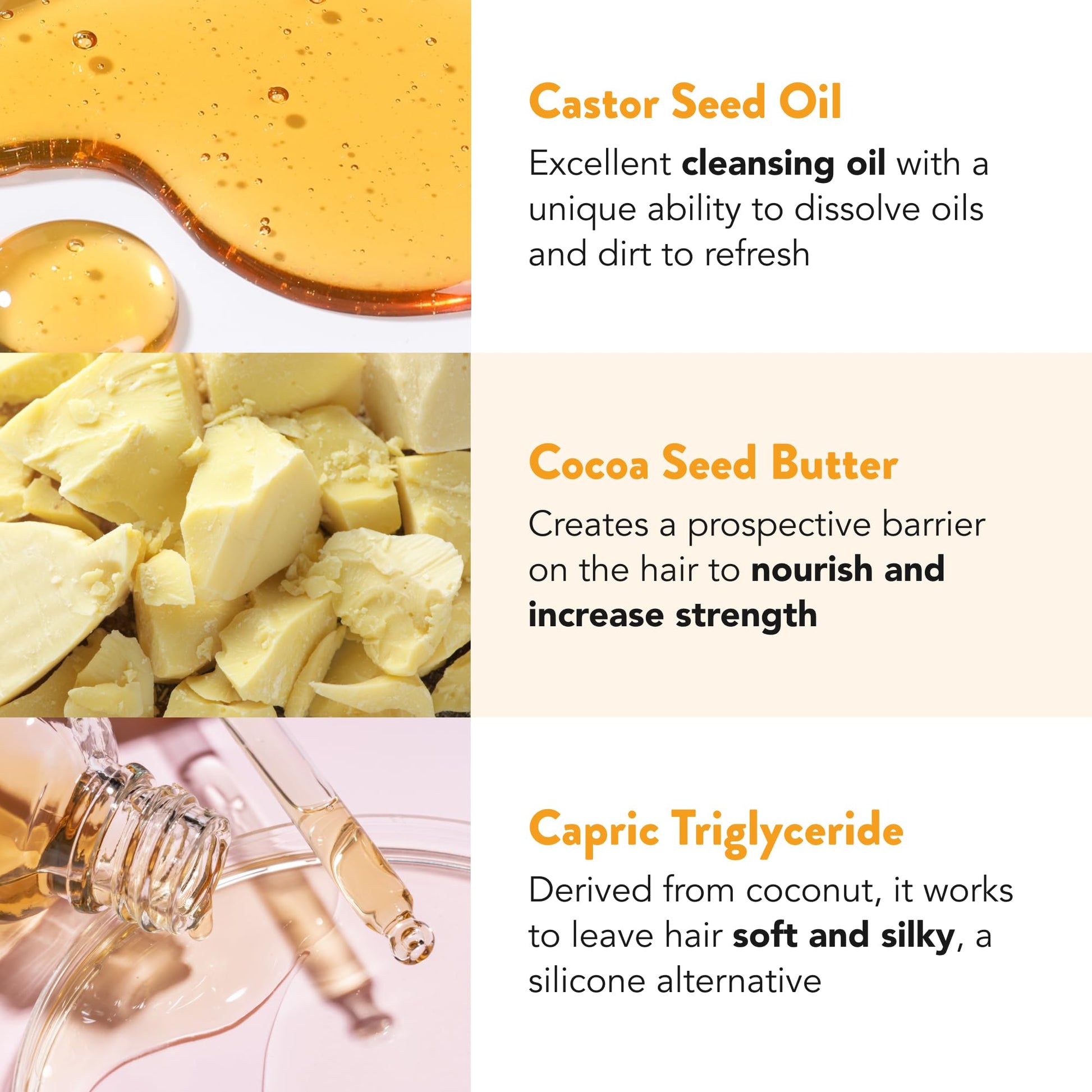 - Nourishing Ingredients: Castor oil is remarkable at dissolving oils and sebum while glycerine moisturizes hair without any heavy oils to weigh hair down.