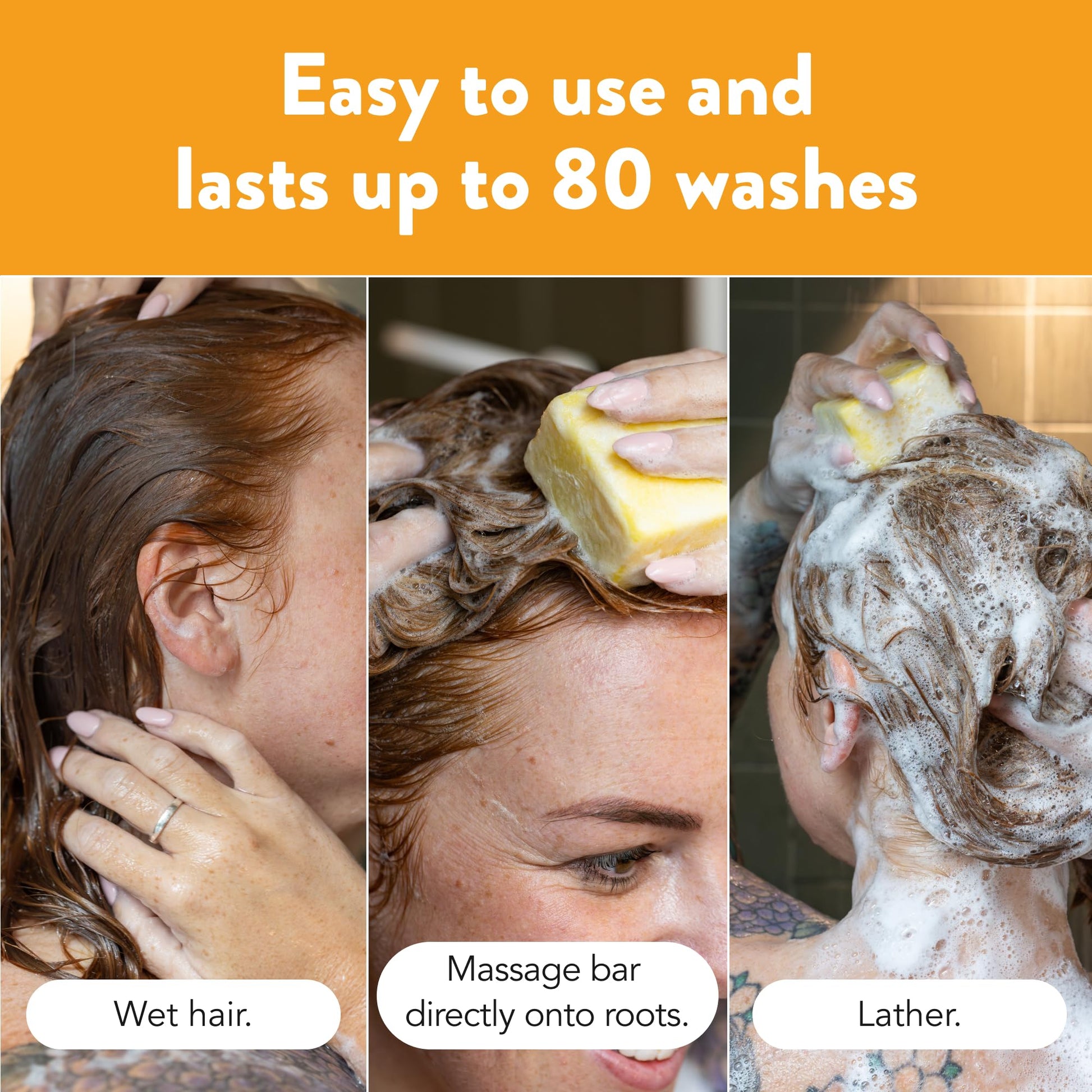 - Save Money & the Planet: Each shampoo bar lasts at least 80 washes, equivalent to three bottles of liquid shampoo. To use, stroke the bar down wet hair โ it will lather!